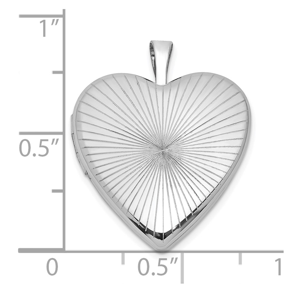 Sterling Silver Rhodium-plated Polished Front/Brushed Back Starburst Pattern 20mm Heart Locket