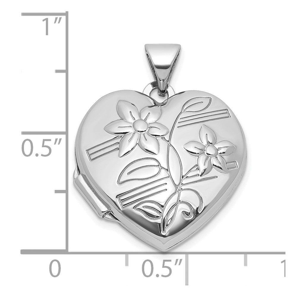 Sterling Silver Rhodium-plated Polished Flowers 18mm Heart Locket