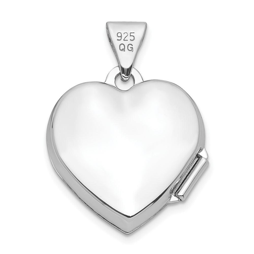 Sterling Silver Rhodium-plated Plain 15mm Heart Locket