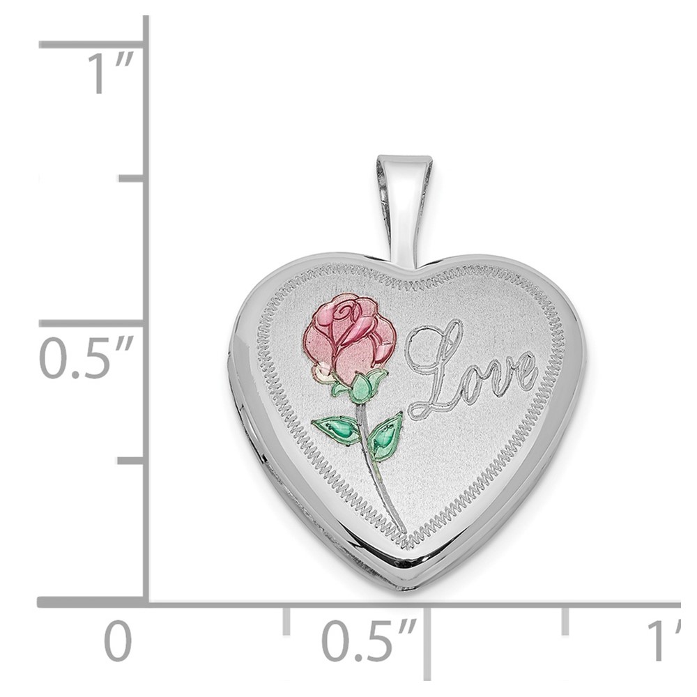 Sterling Silver Rhodium-plated 16mm Enameled & D/C Love Heart Locket
