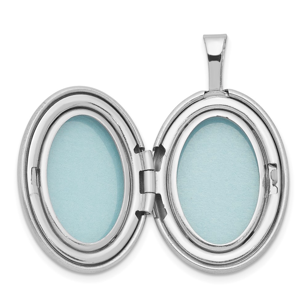 Sterling Silver Rhodium-plated 19mm Diamond Polished/Satin Star Oval Locket