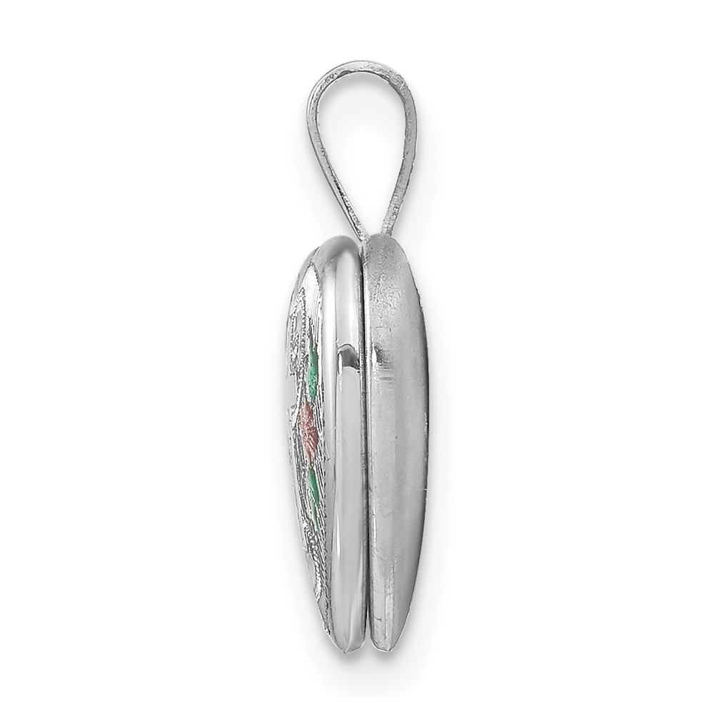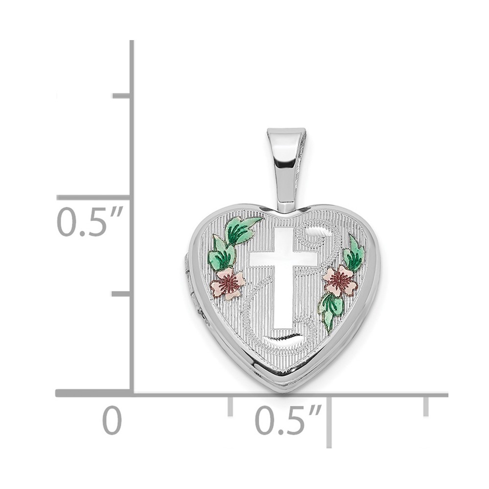 Sterling Silver Rhodium-plated Cross w/ Enamel Flowers 12mm Heart Locket