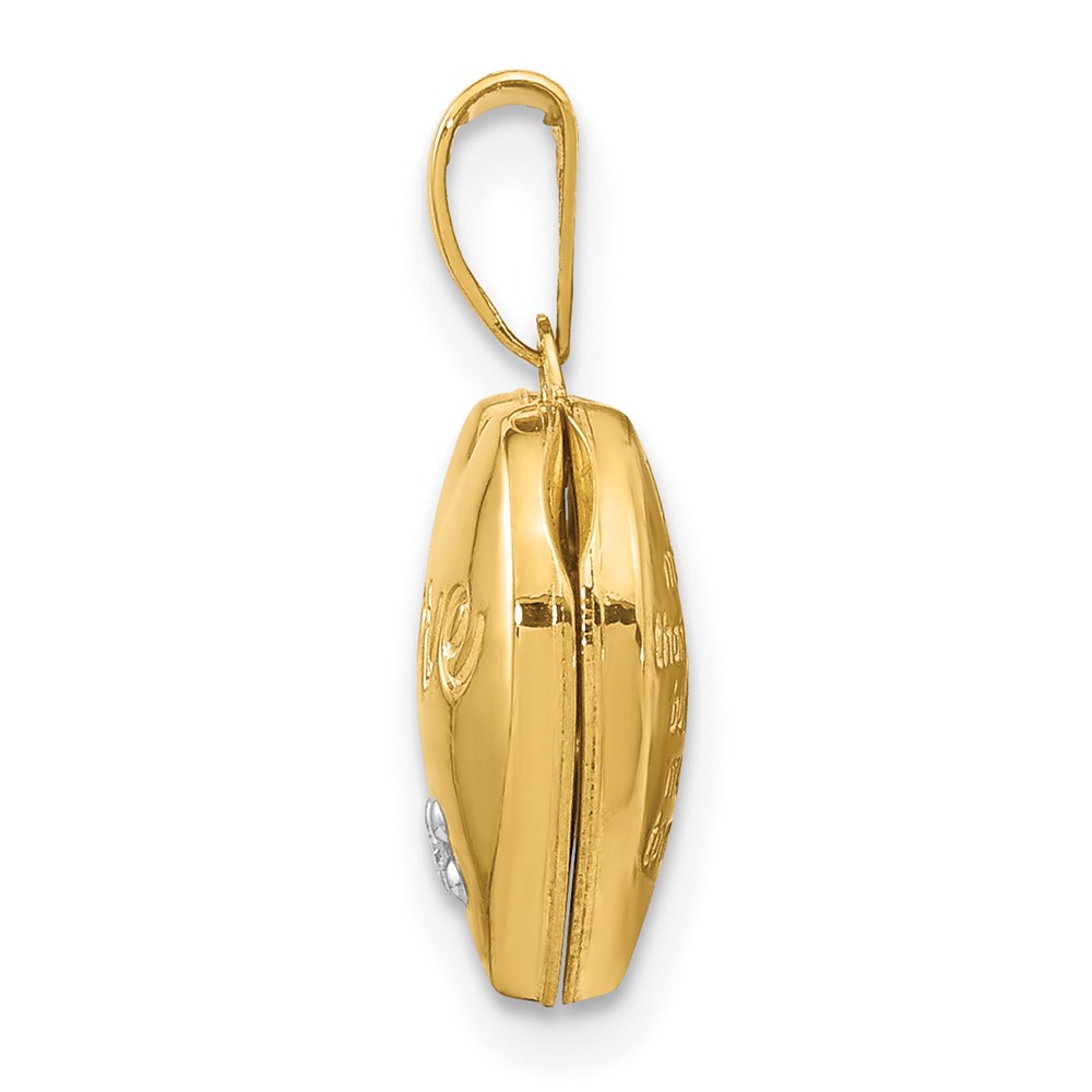 14k Two-tone Diamond LOVE with Poem on Reverse with Heart Charm 12mm Heart Locket