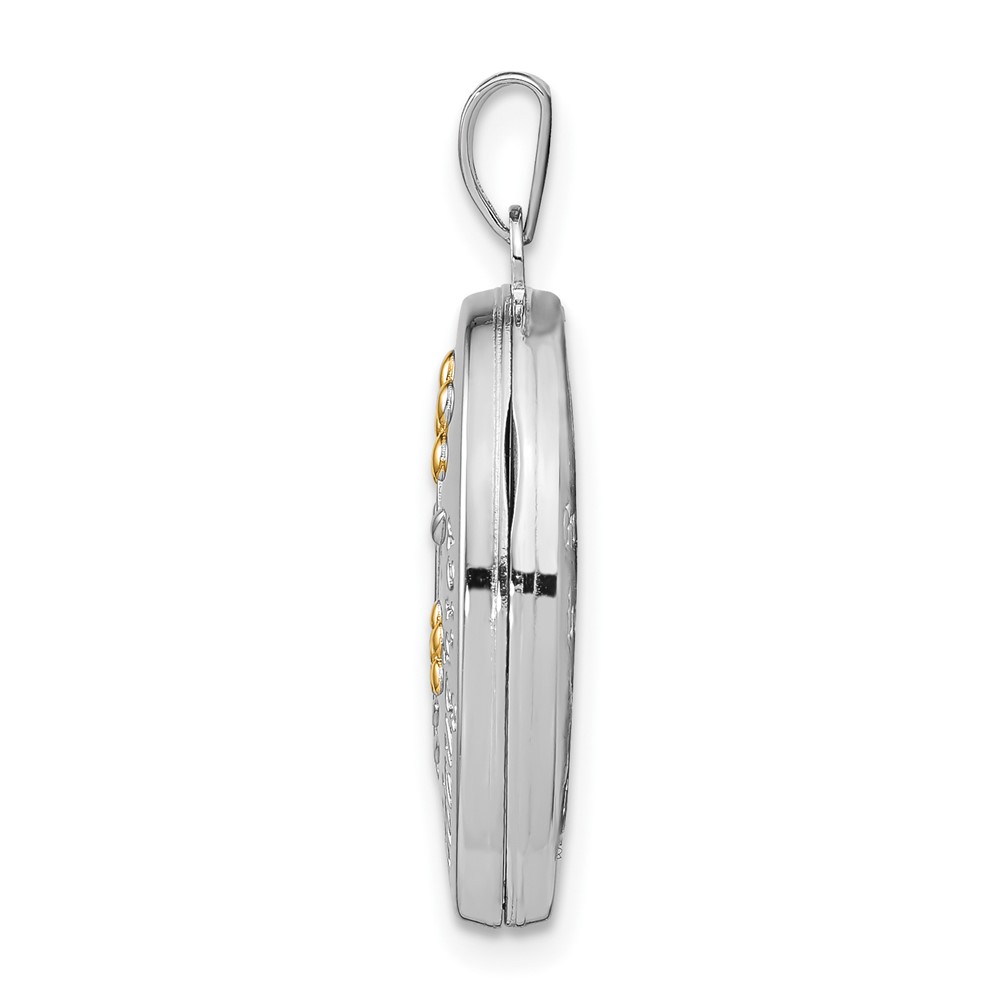 Sterling Silver Rhod-plated & Gold-plated Floral Granddaughter Oval Locket