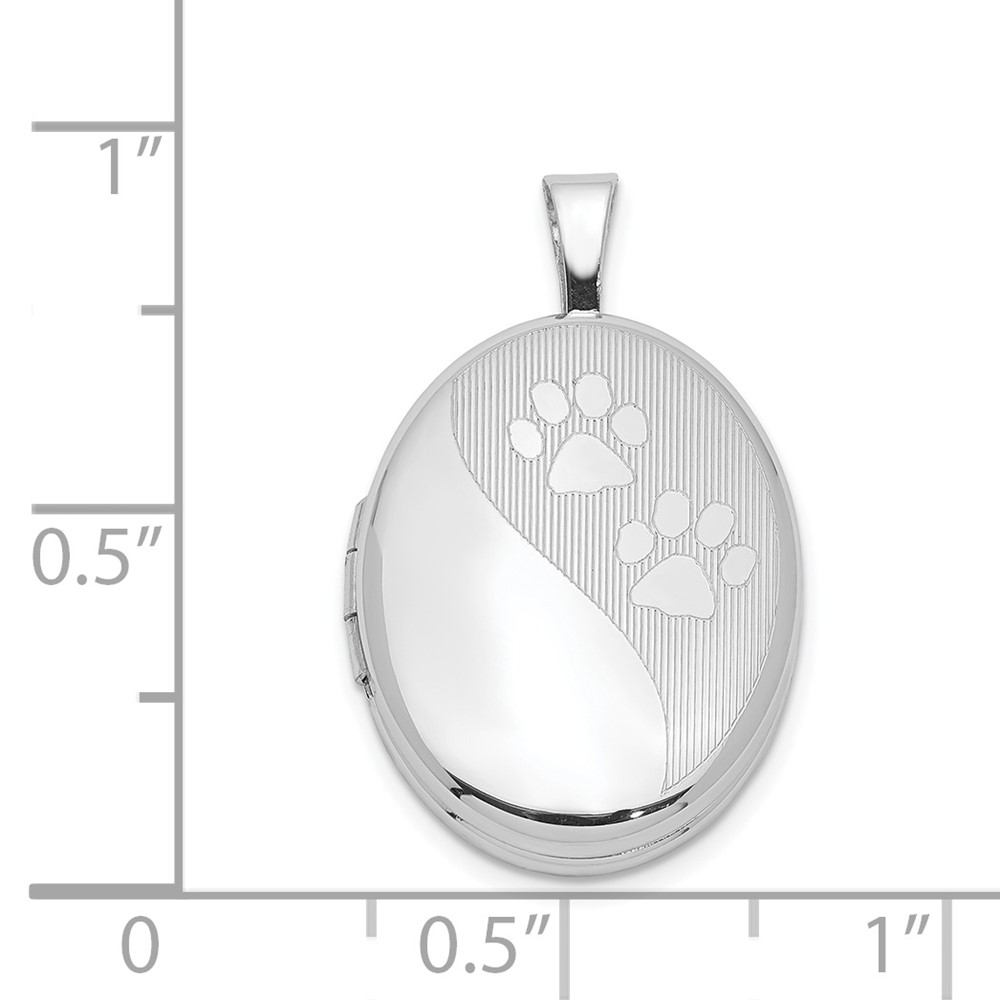 Sterling Silver Rhodium-plated Satin & Polished Paw Prints 19mm Oval Locket