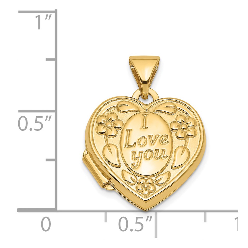 14k Floral I LOVE YOU Script 15mm Heart Locket