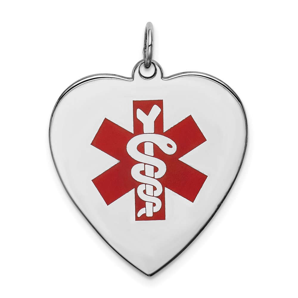 Sterling Silver RH-pltd Engraveable Enamel Lg.Heart Medical Pendant