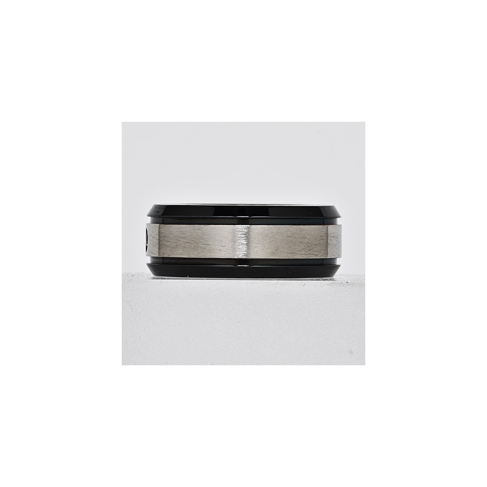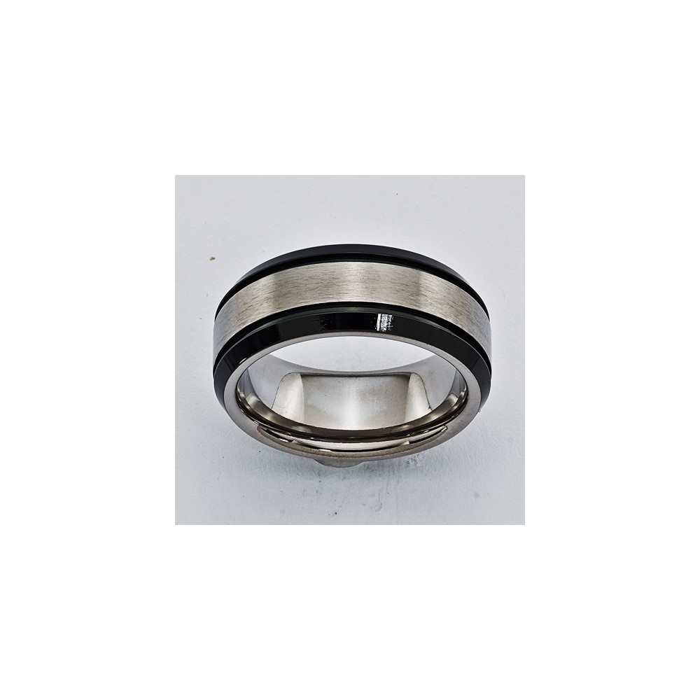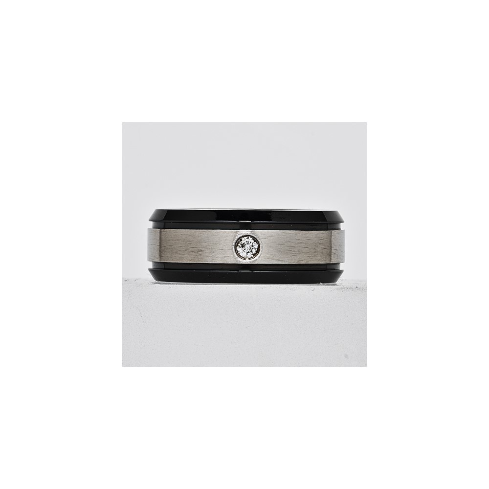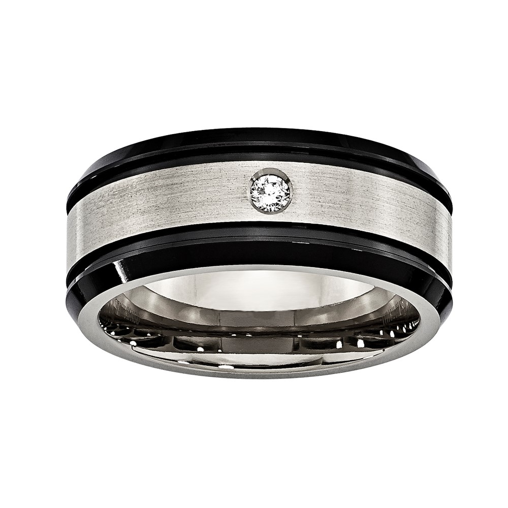 Titanium 8mm 0.05ct Diamond Double Groove & Black IP Edges Band