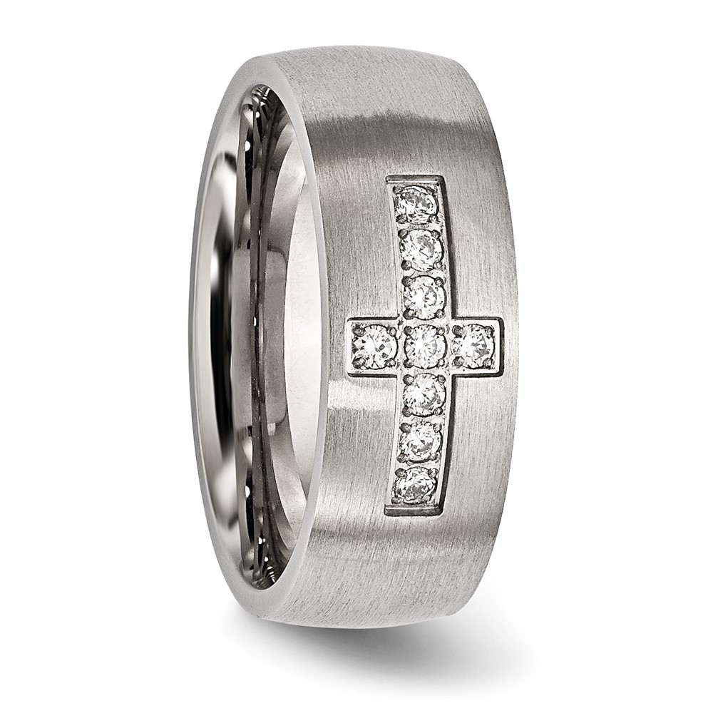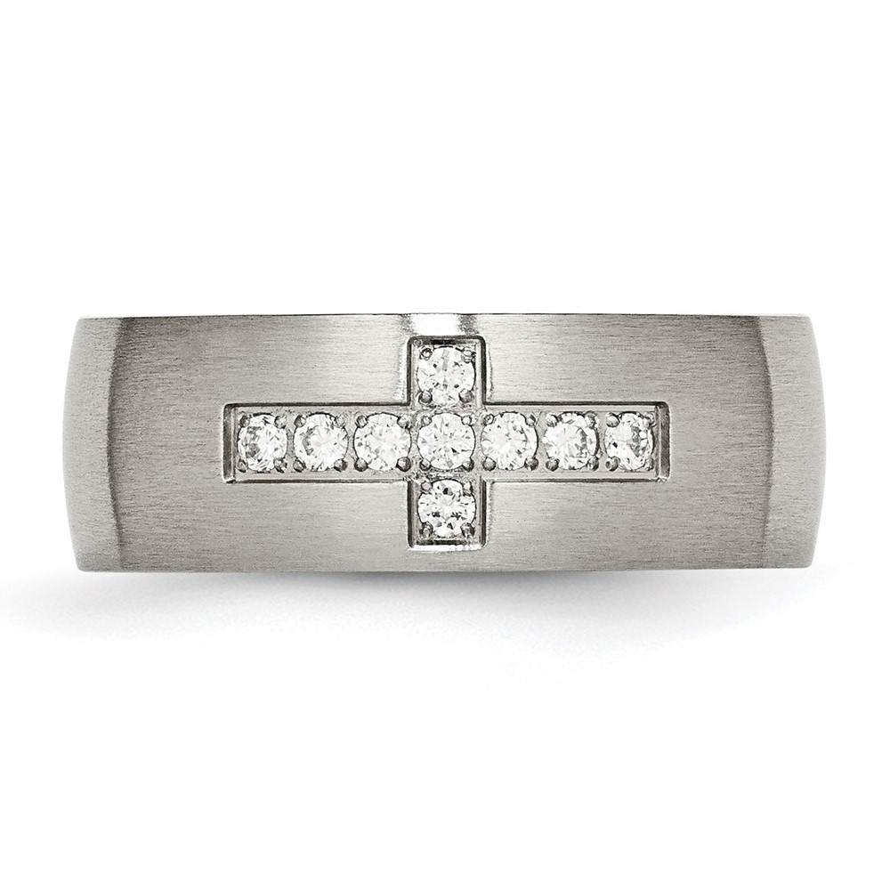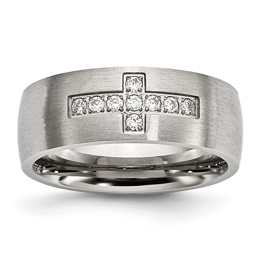 Chisel Stainless Steel Brushed with CZ Cross 7.75mm Band