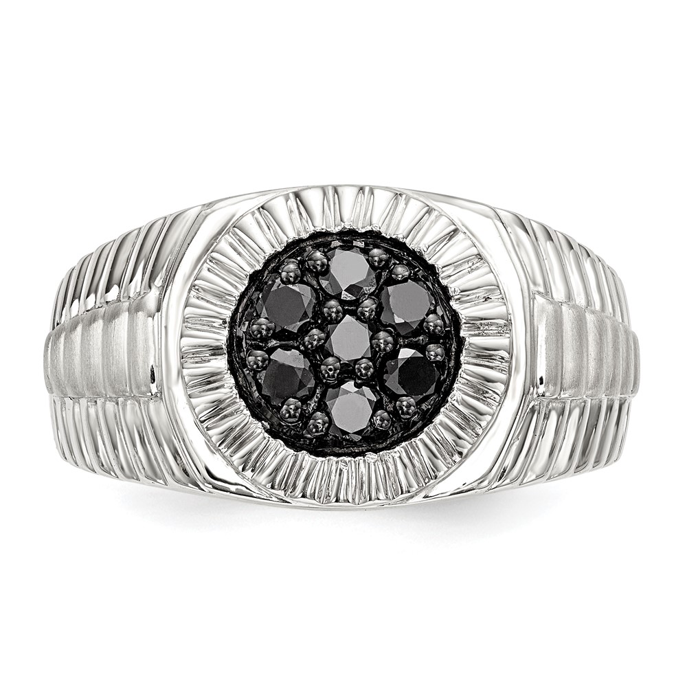 Sterling Silver Rhod-plated Mens Black Diamond Polished/Satin Ring