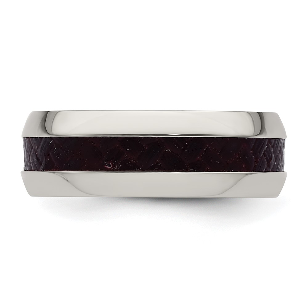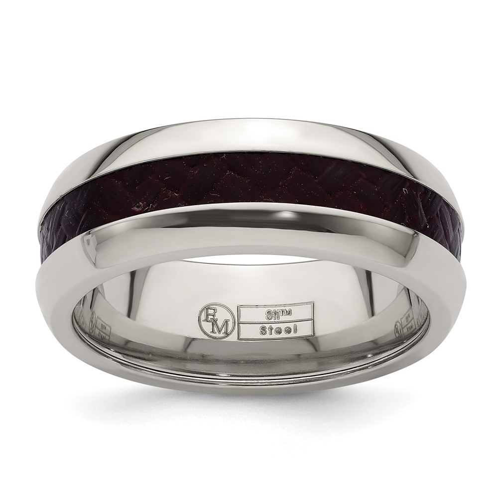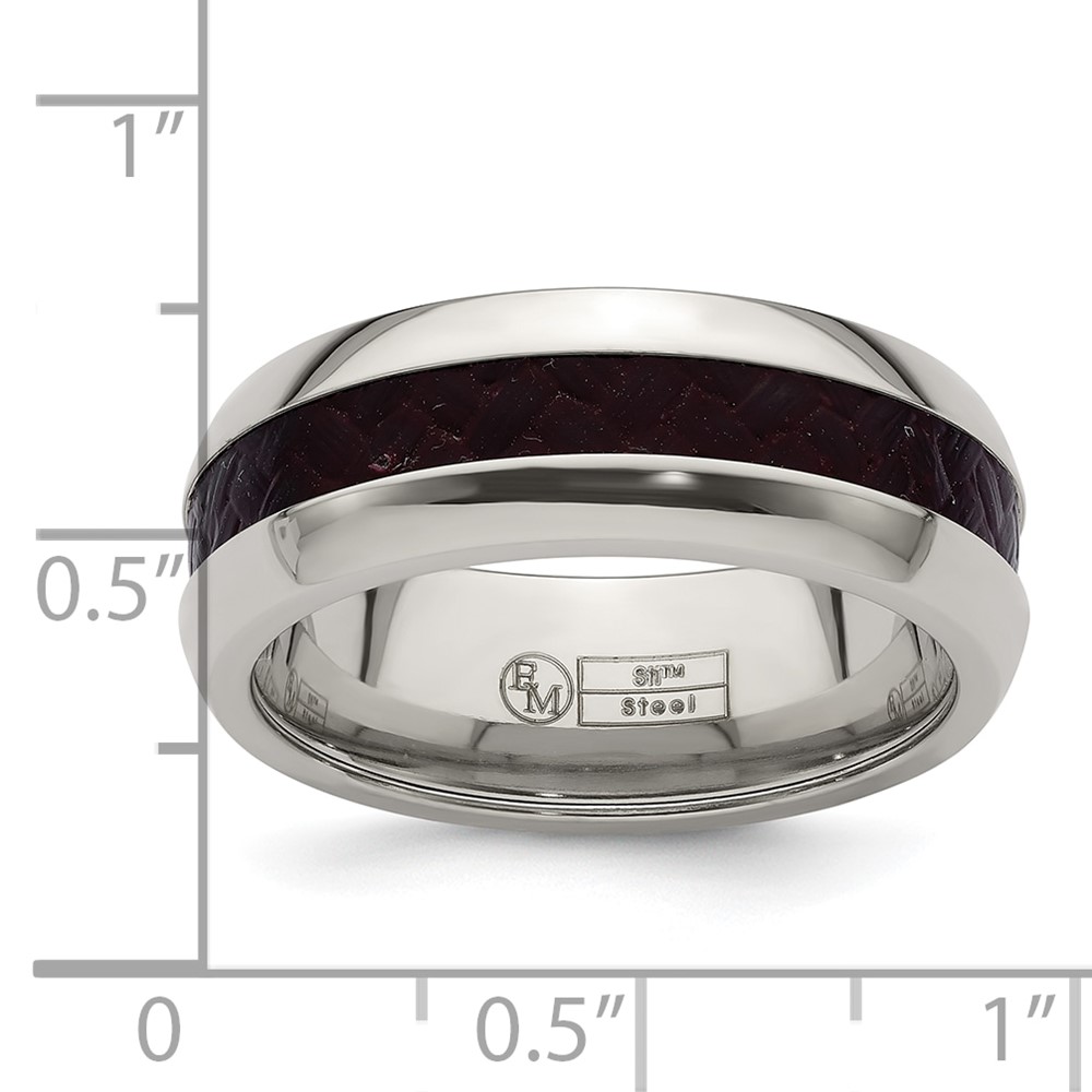 Edward Mirell Stainless Steel Red Carbon Fiber 8mm Band Size 10