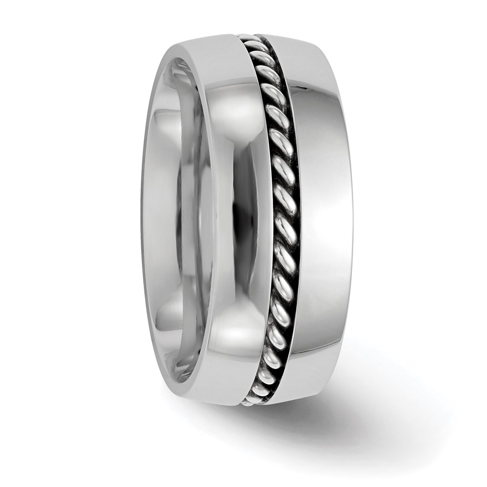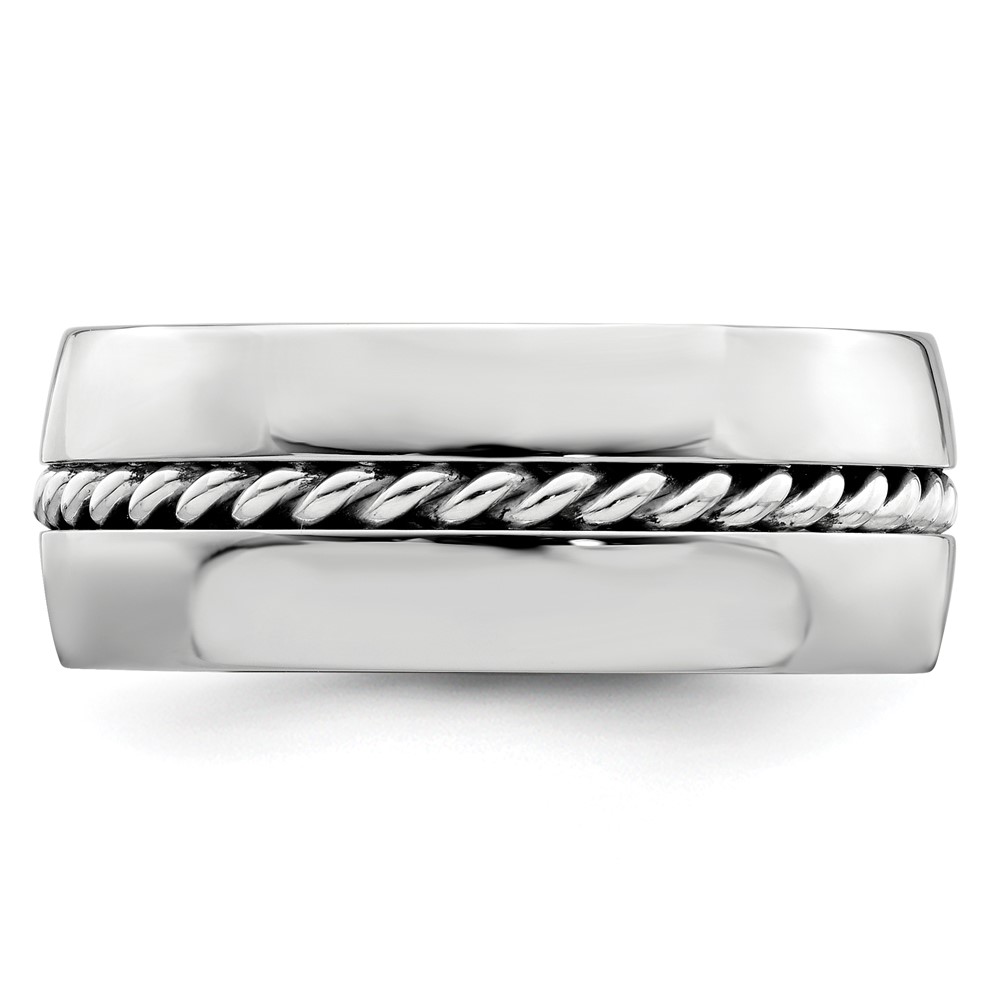 Edward Mirell Polished Cobalt with Sterling Silver Rope Inlay 9mm Band Size 10