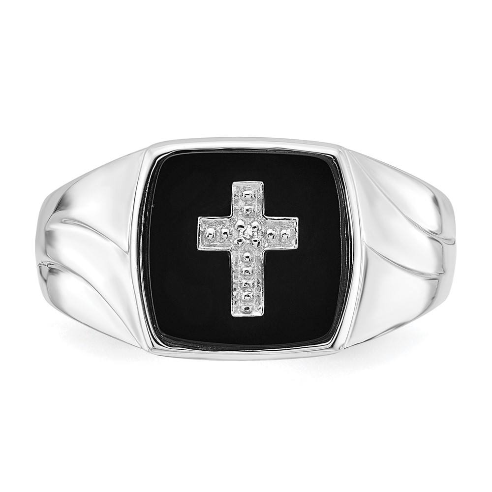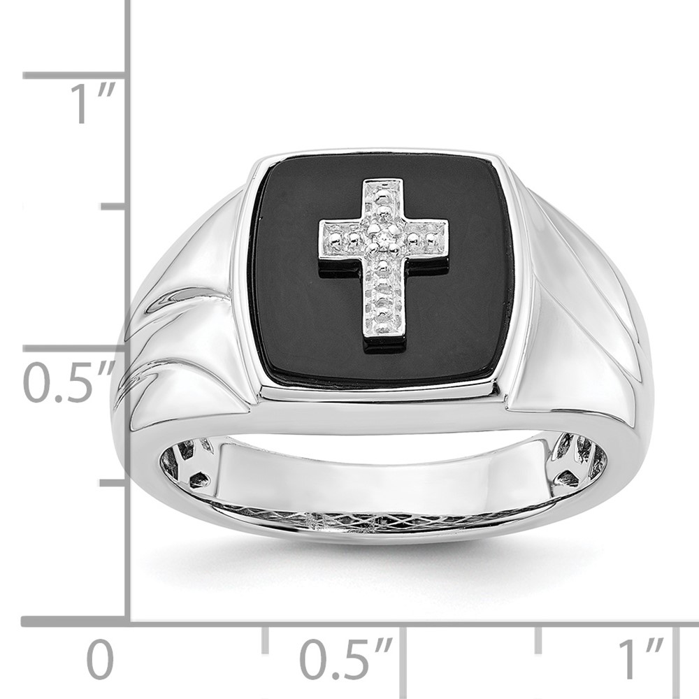 Sterling Silver Polished Onyx & Diamond Cross Men's Ring