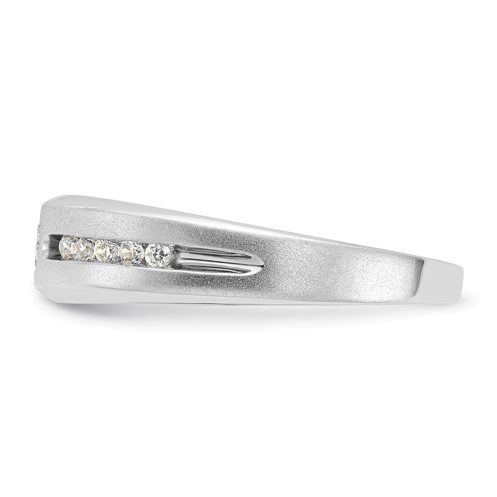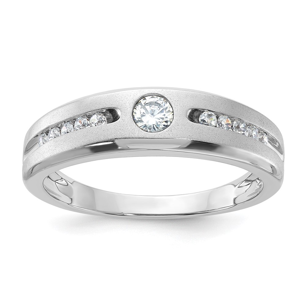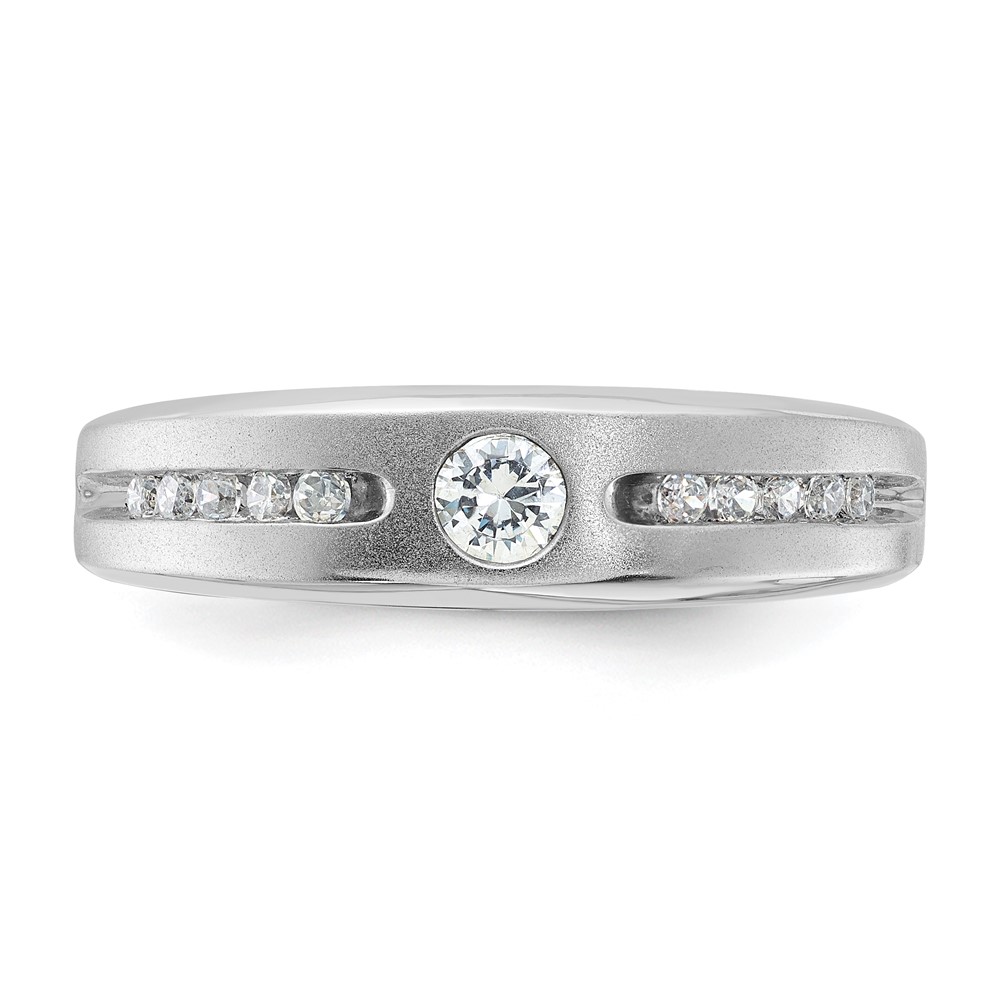 Sterling Silver Polished & Satin CZ Men's Wedding Band
