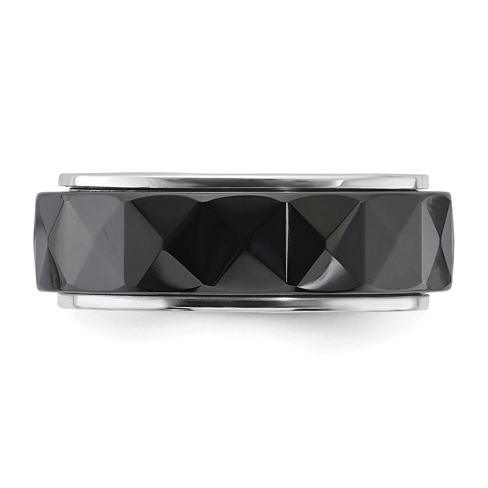 Silver-tone & Moveable Faceted Black Ceramic Polished Men's Band