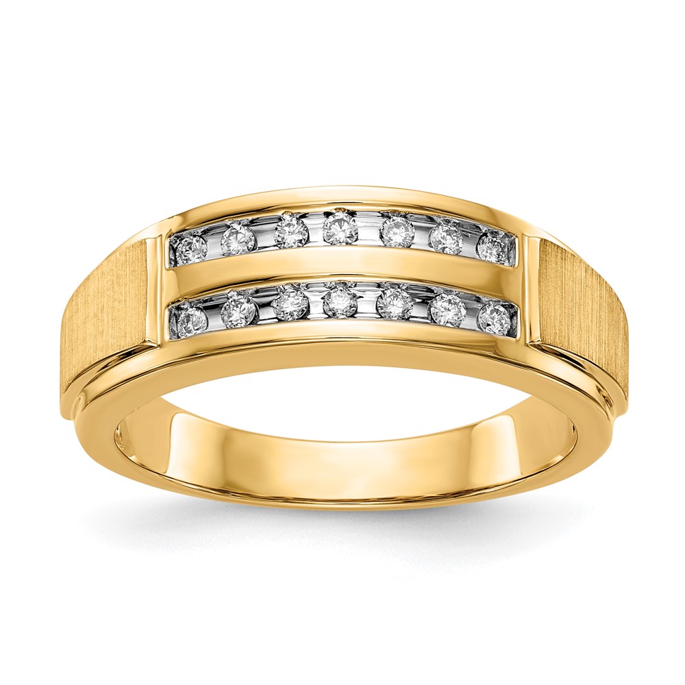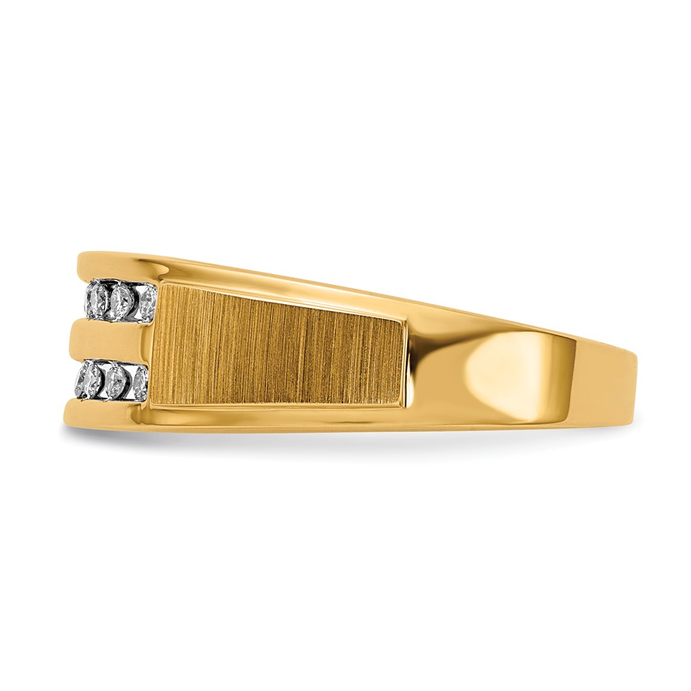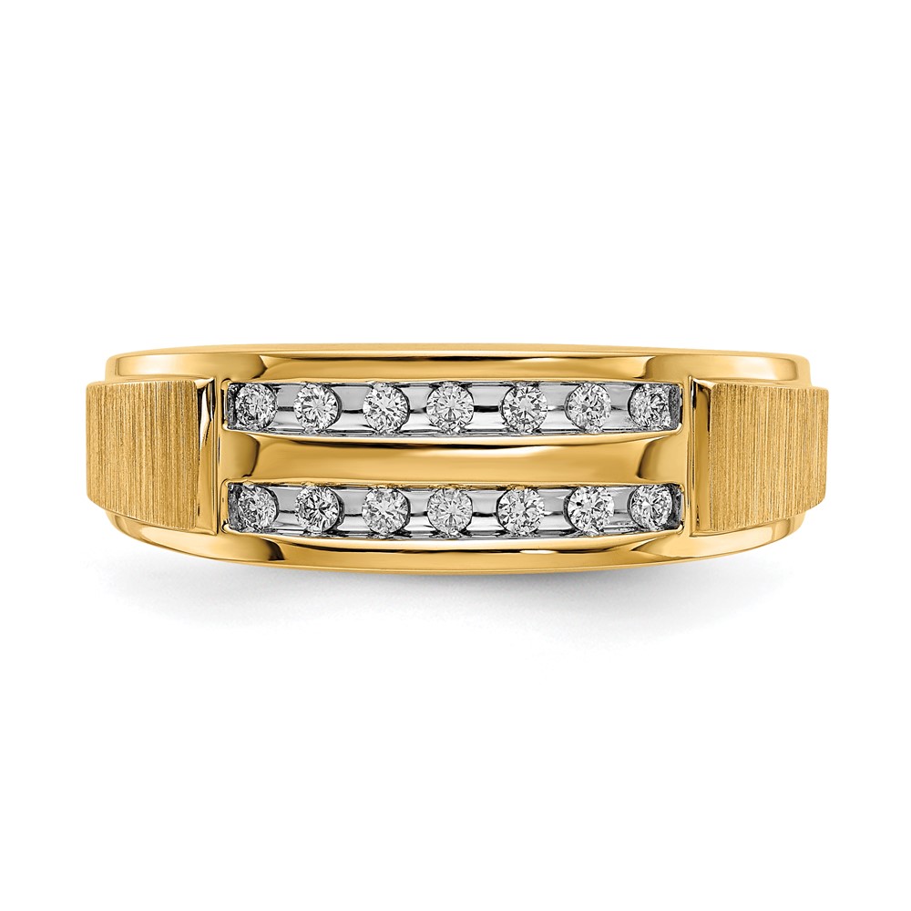 10k Yellow Gold & White Rhodium Polished & Brushed Diamond Men's Ring