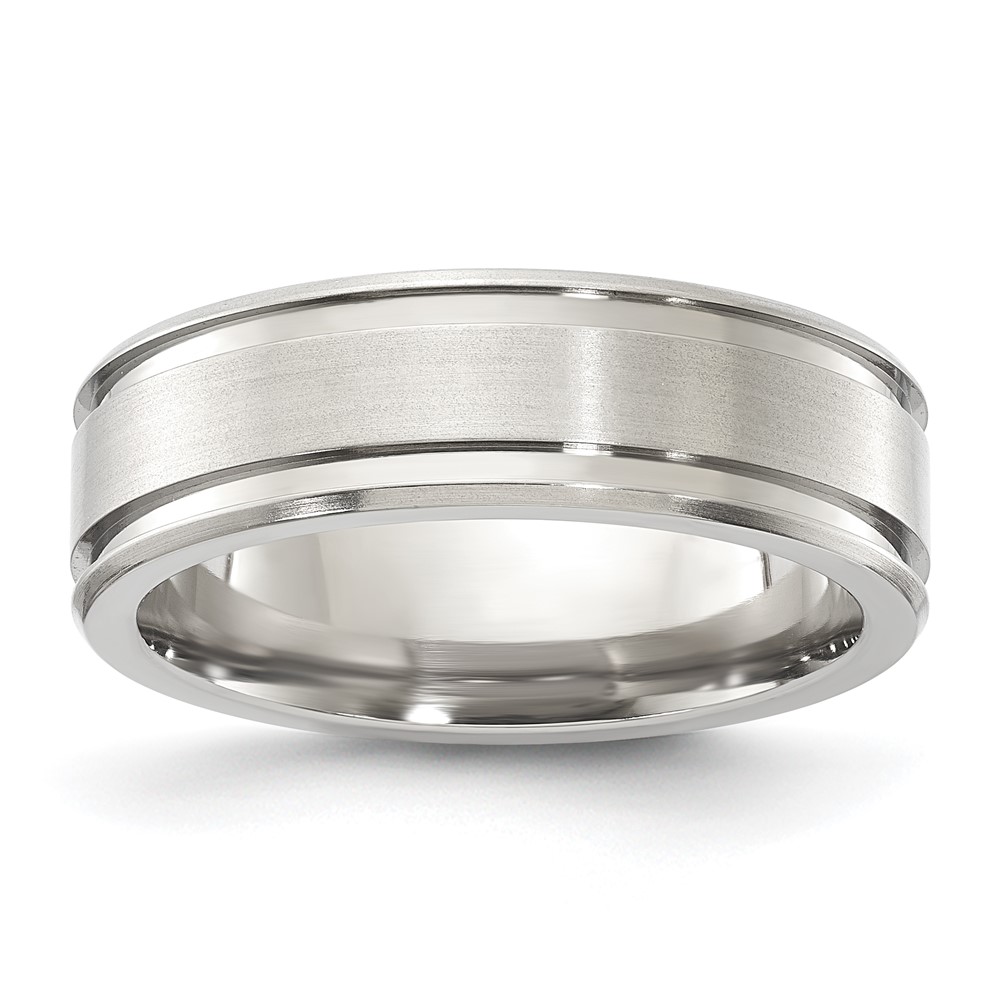 Titanium Polished & Brushed 7mm Double Grooved Men's Band