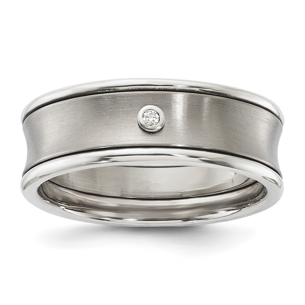 Titanium Polished & Brushed CZ Men's Ring