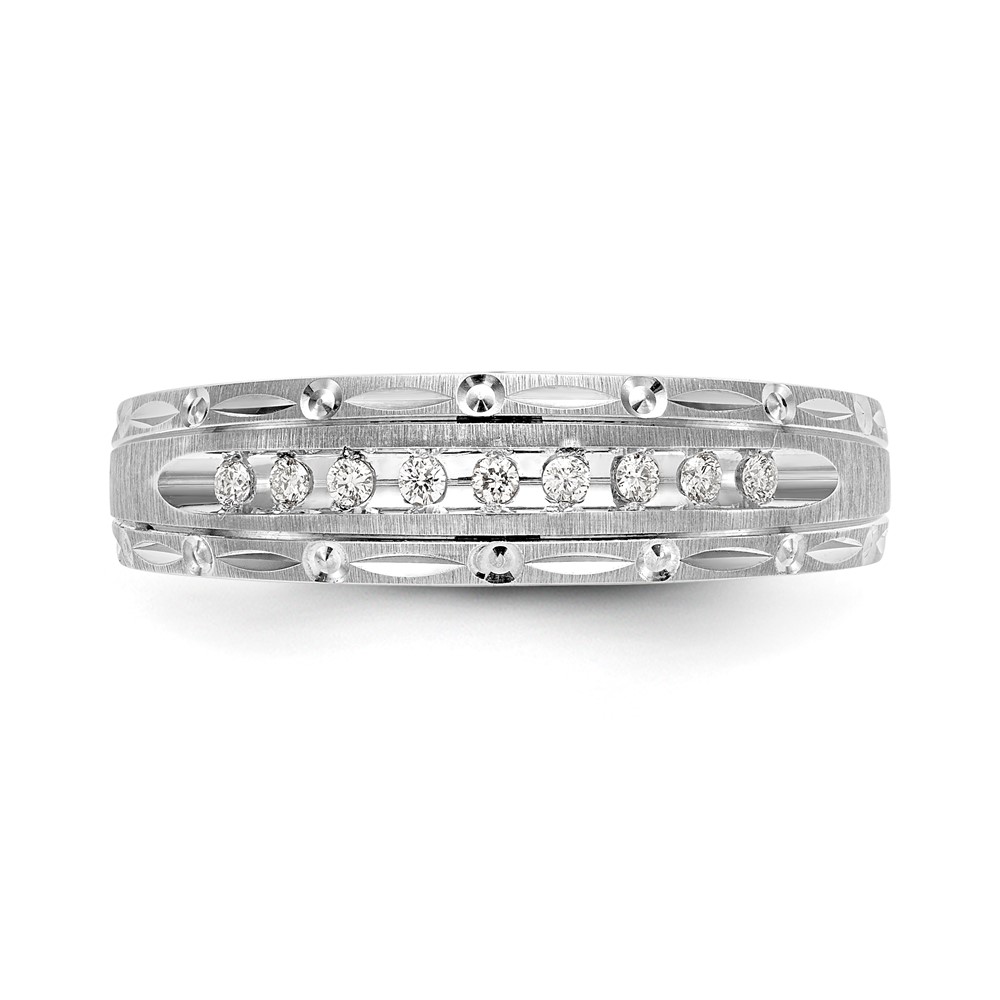 14k White Gold AA Quality 1/10 carat Diamond Trio Mens Complete Wedding Band