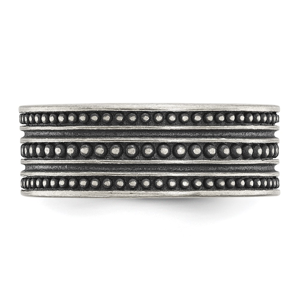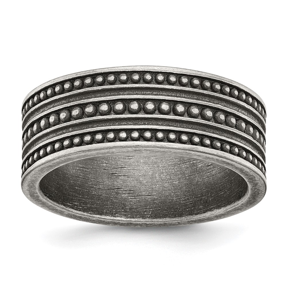 Chisel Stainless Steel Antiqued Gun Metal IP-plated Beaded 10mm Flat Band