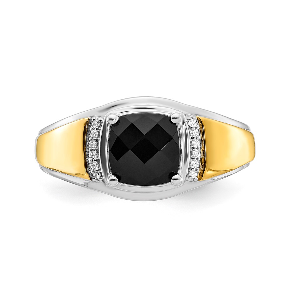 Sterling Silver w/GP Onyx & CZ Men's Ring
