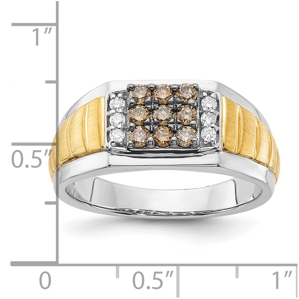 10K Two-tone Polished and Brushed White and Brown Diamond Ring