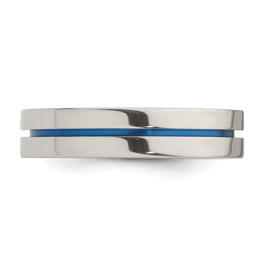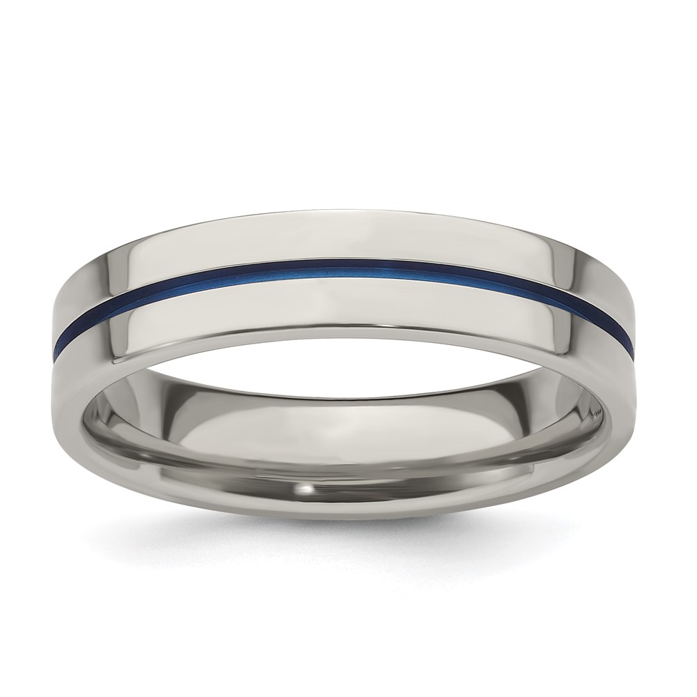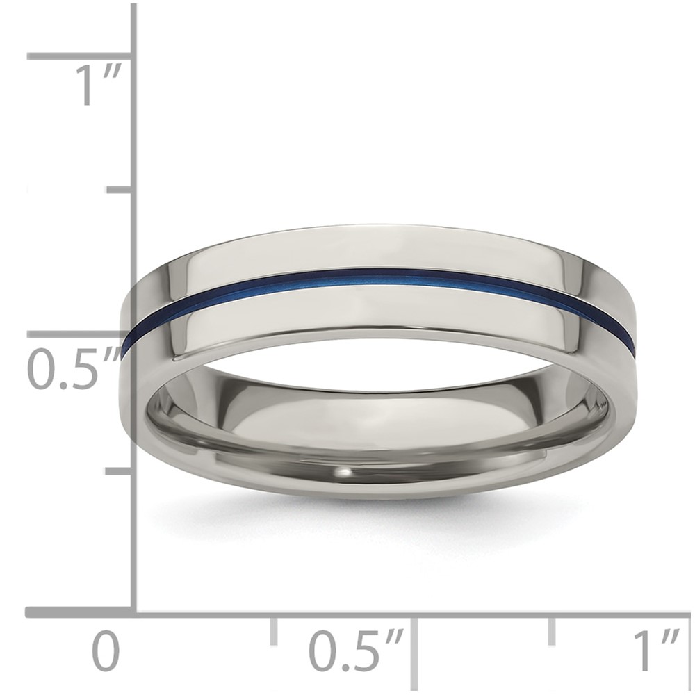 Edward Mirell Gray Titanium with Blue Anodized Stripe Flat 5mm Band