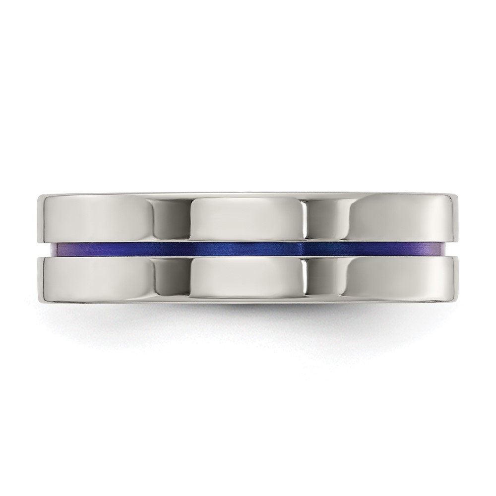 Edward Mirell Gray Titanium 6mm Blue Anodized Flat Band