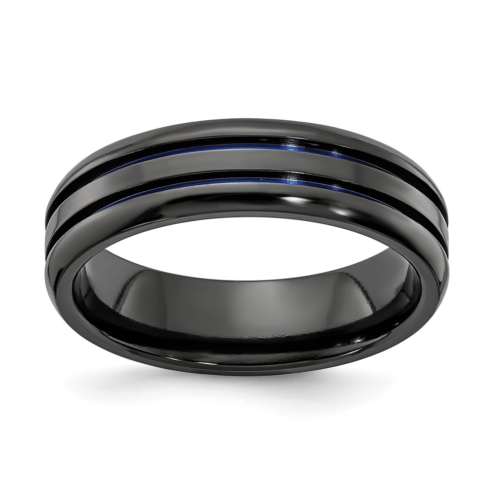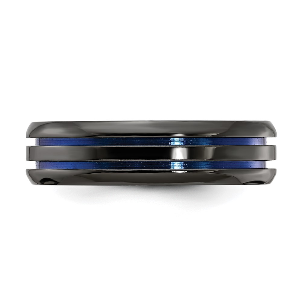 Edward Mirell Black Ti Beveled & Grooved Blue Anodized 6mm Band