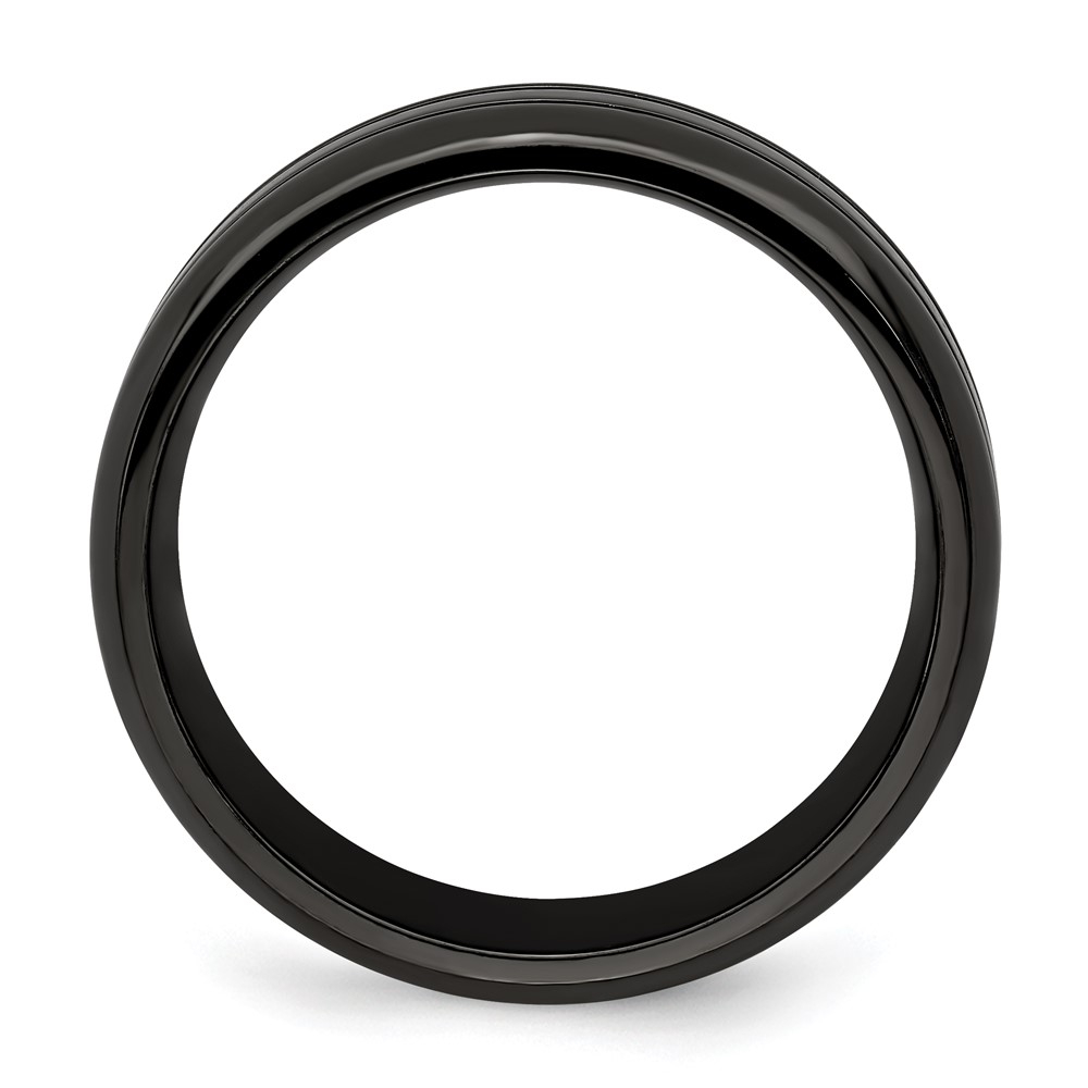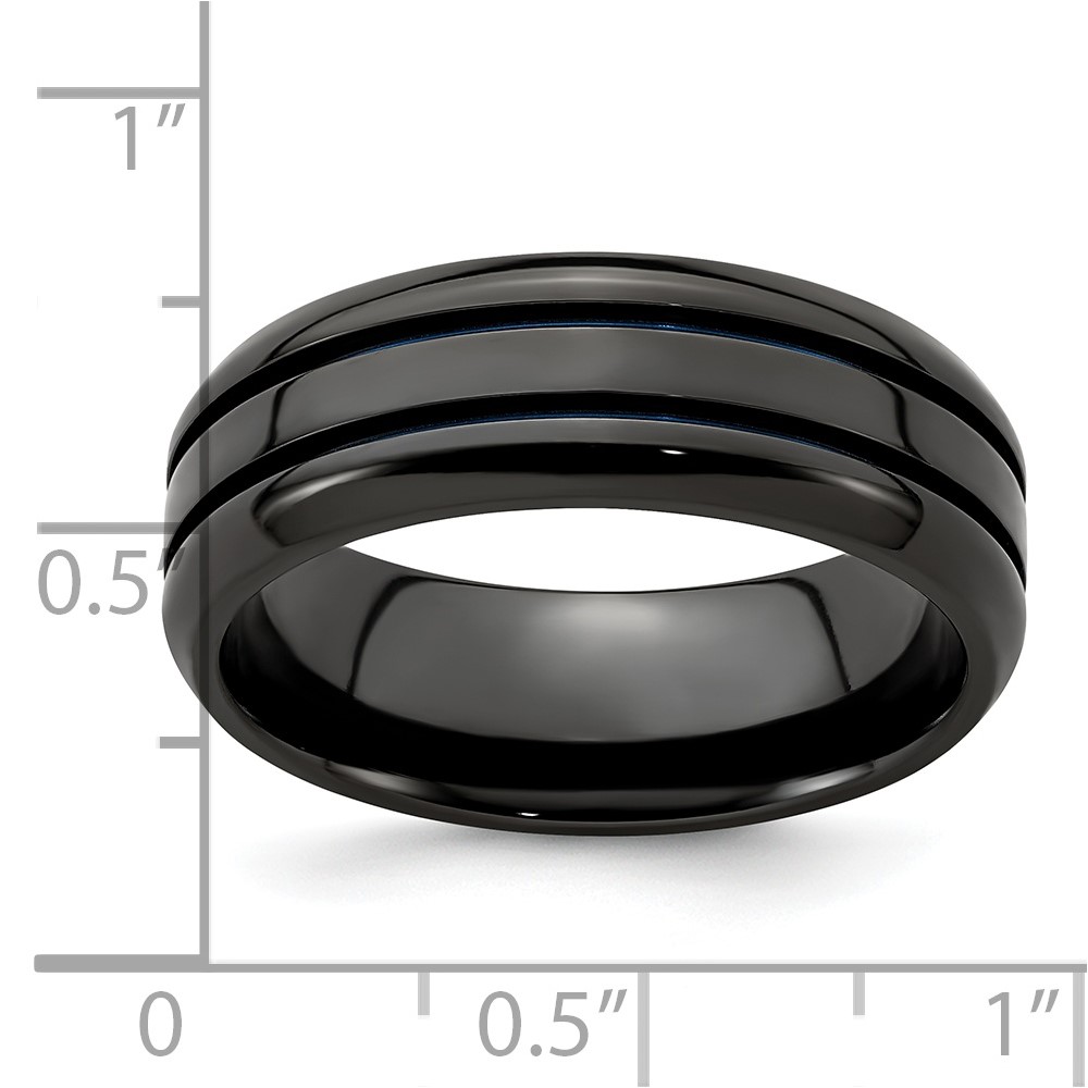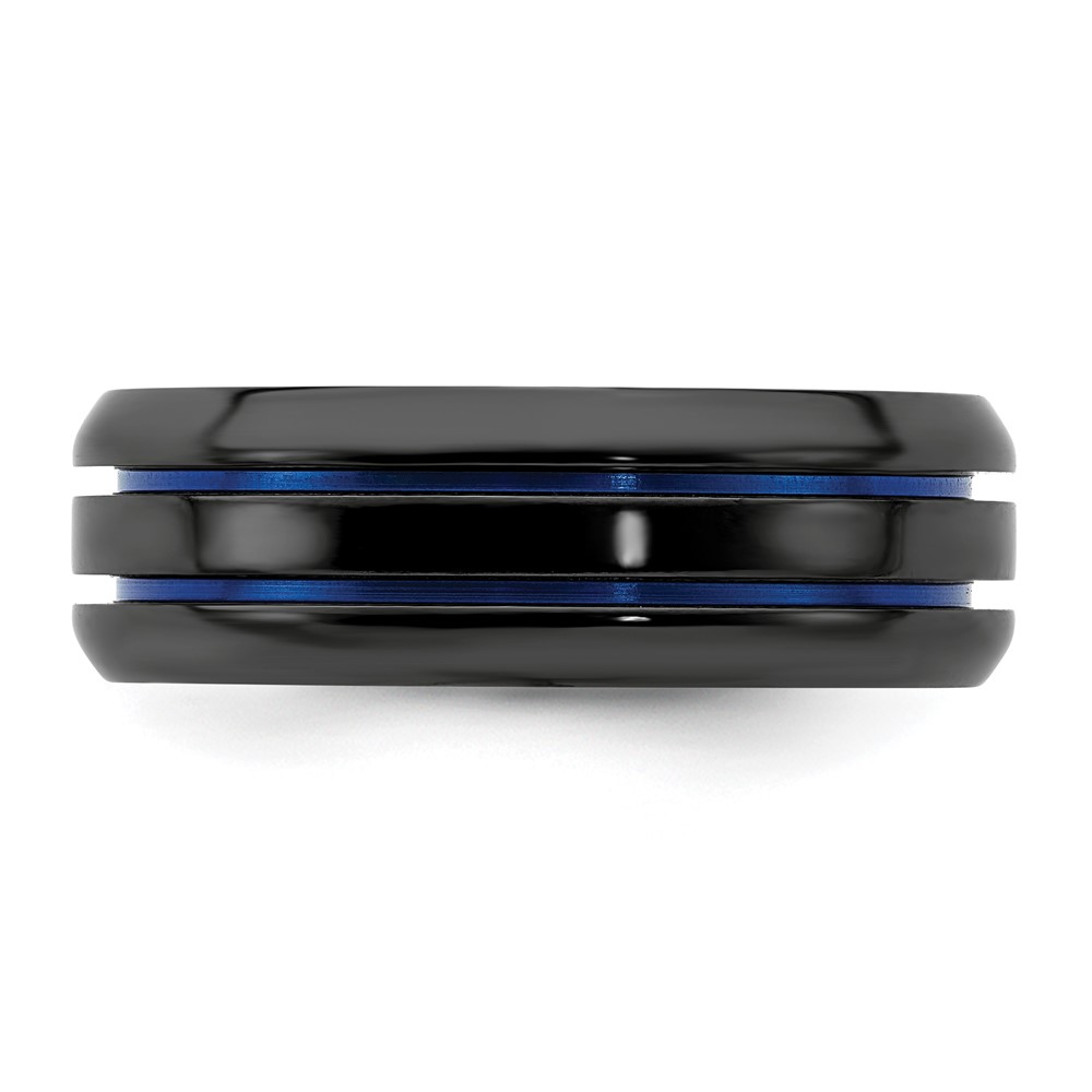 Edward Mirell Titanium Black Ti with Blue Anodized Grooves Beveled Edge 8mm Band