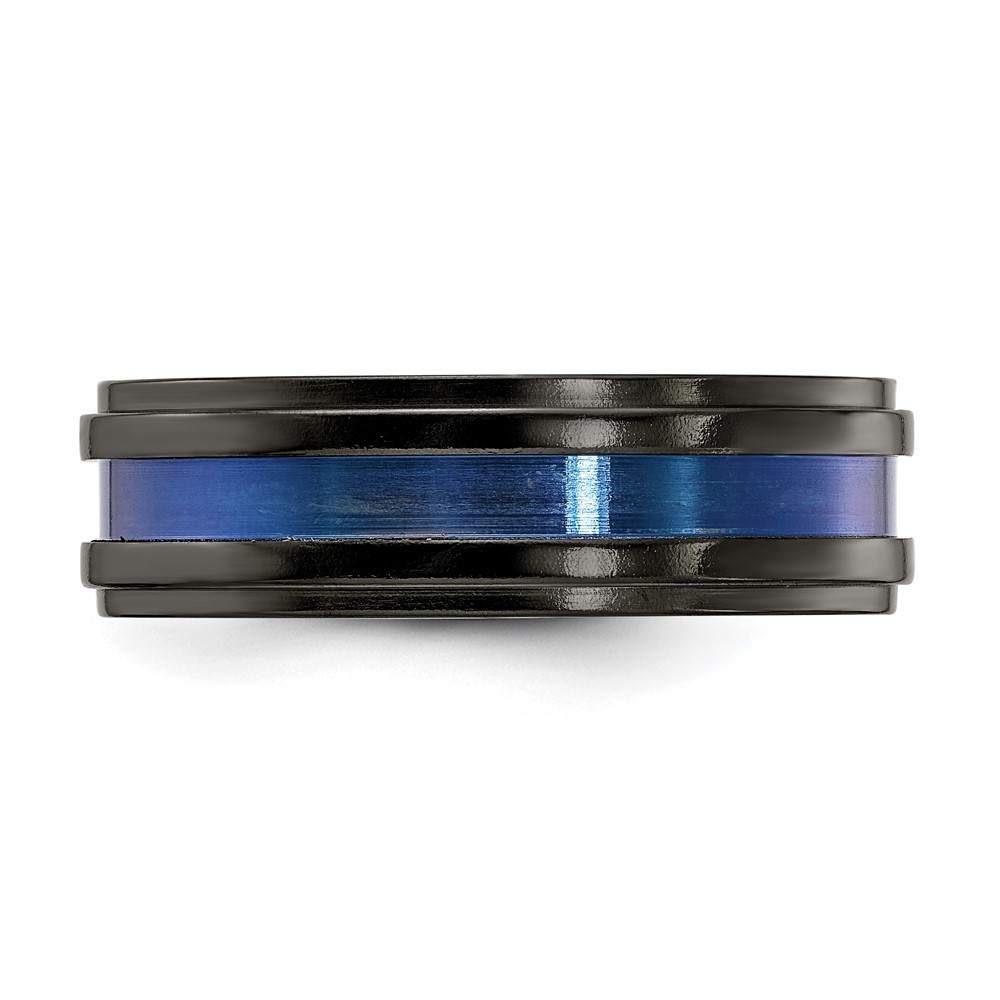 Edward Mirell Black Ti Grooved Blue Anodized 7mm Band