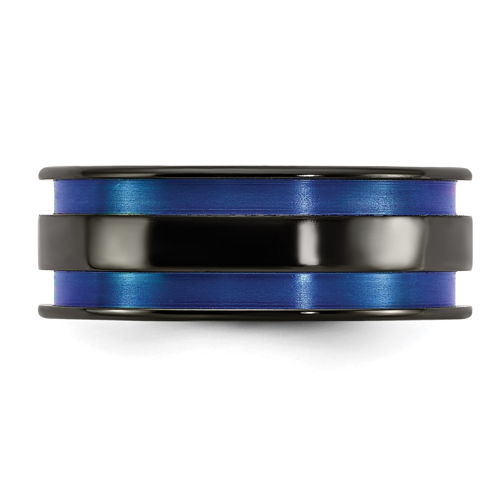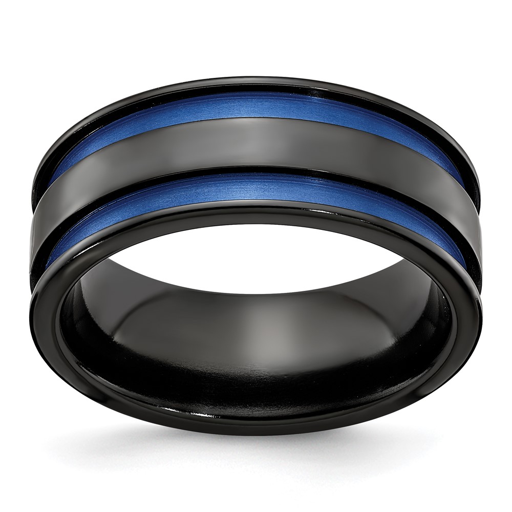 Edward Mirell Black Ti with Blue Anodized Grooves Flat 8.5mm Band