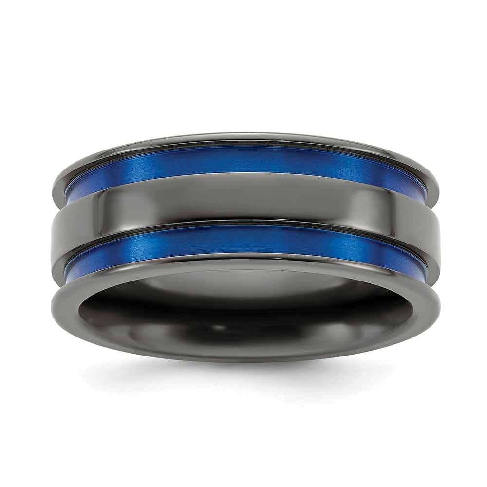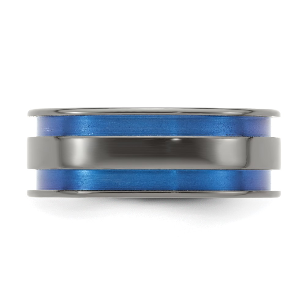 Edward Mirell Black Ti Grooved Blue Anodized 8mm Band