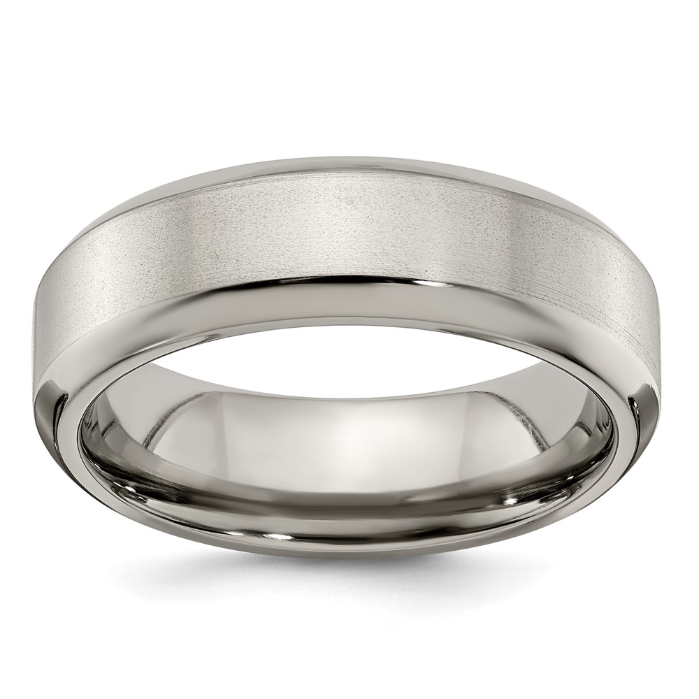 Edward Mirell Titanium Brushed/Polished Beveled Edge 7mm Band Size 6