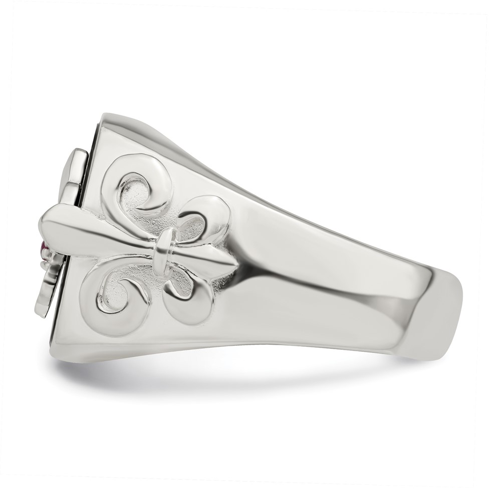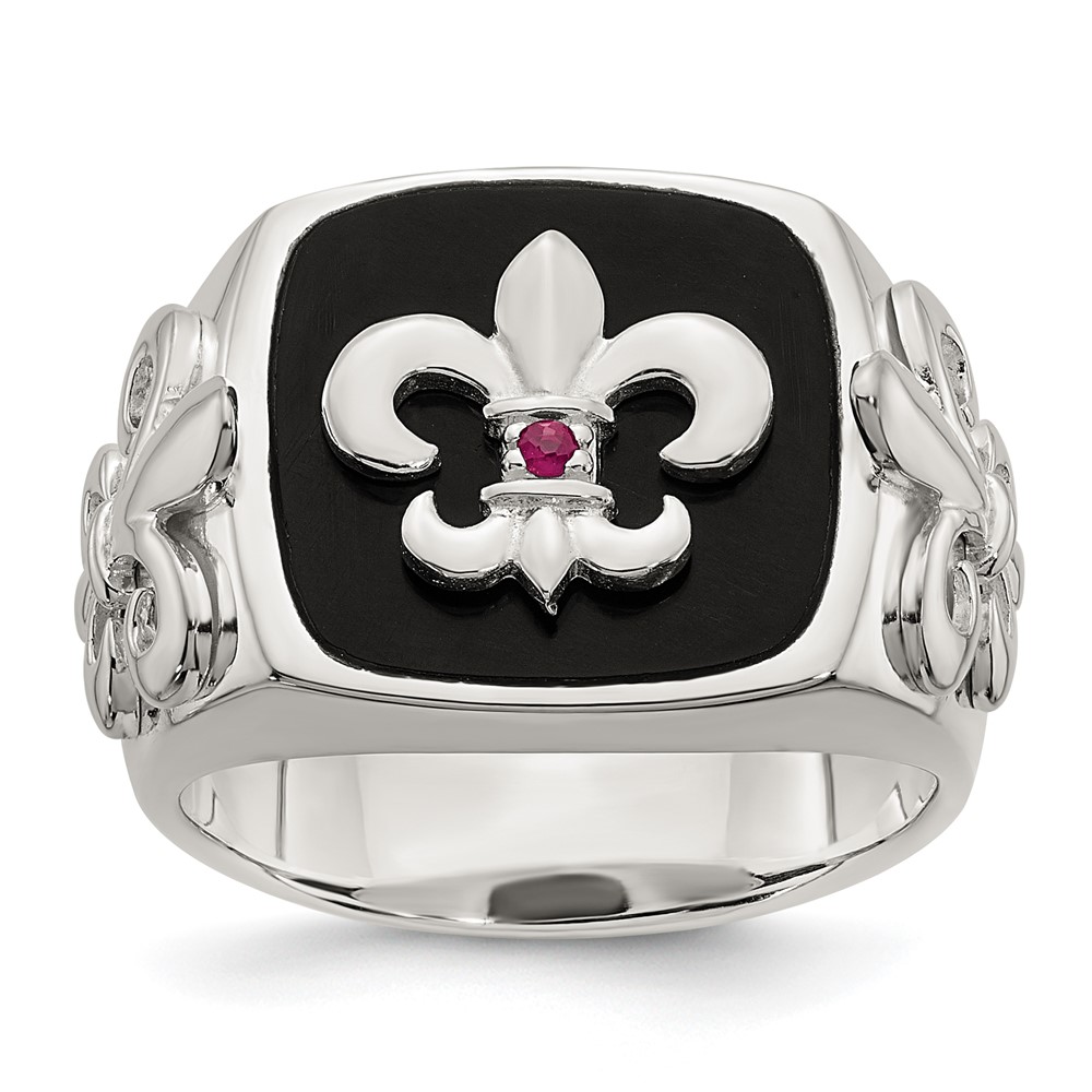 Sterling Silver .03Ruby/Black Agate Fleur de Lis Ring