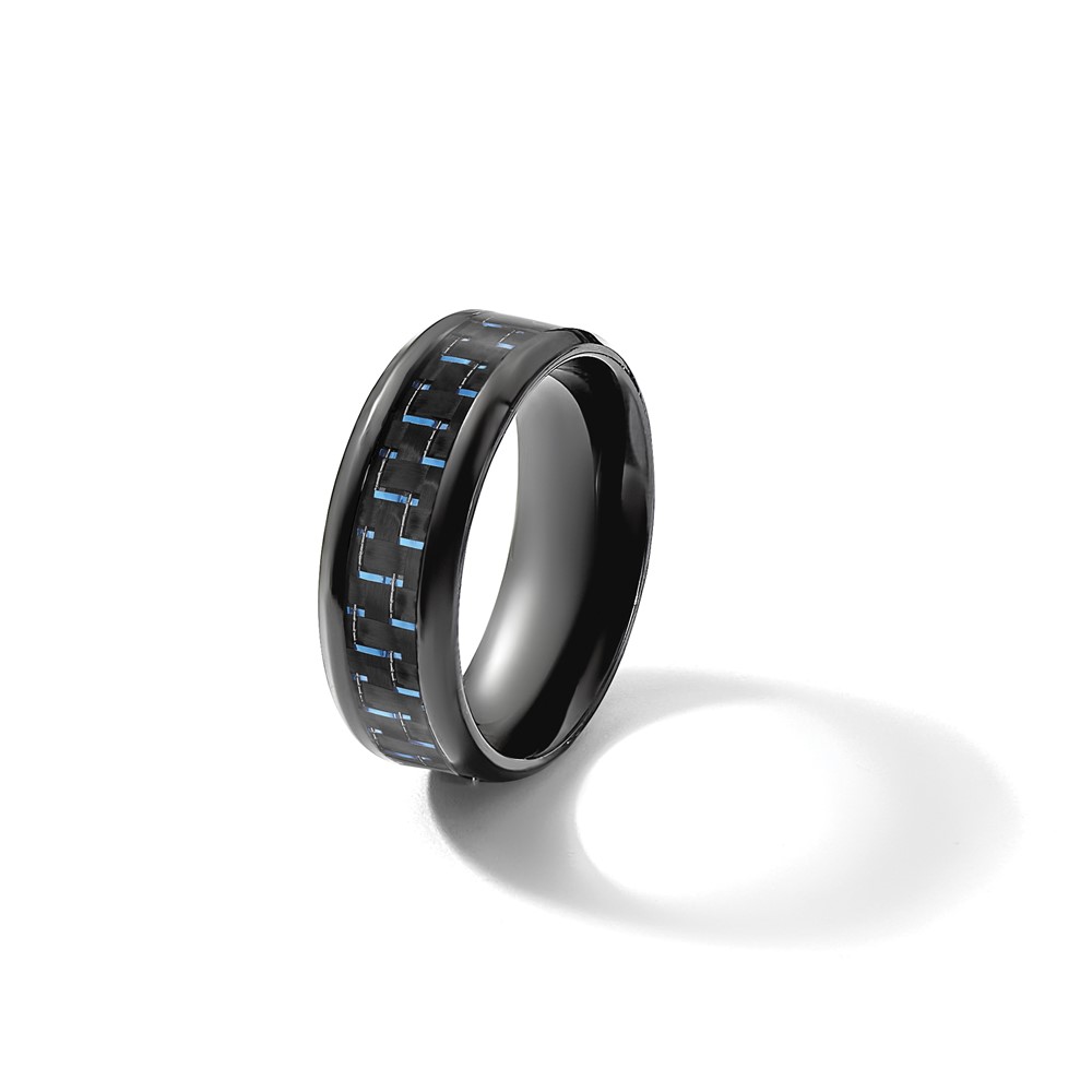 Chisel Black Titanium Polished with Black and Blue Carbon Fiber Inlay 8mm Band