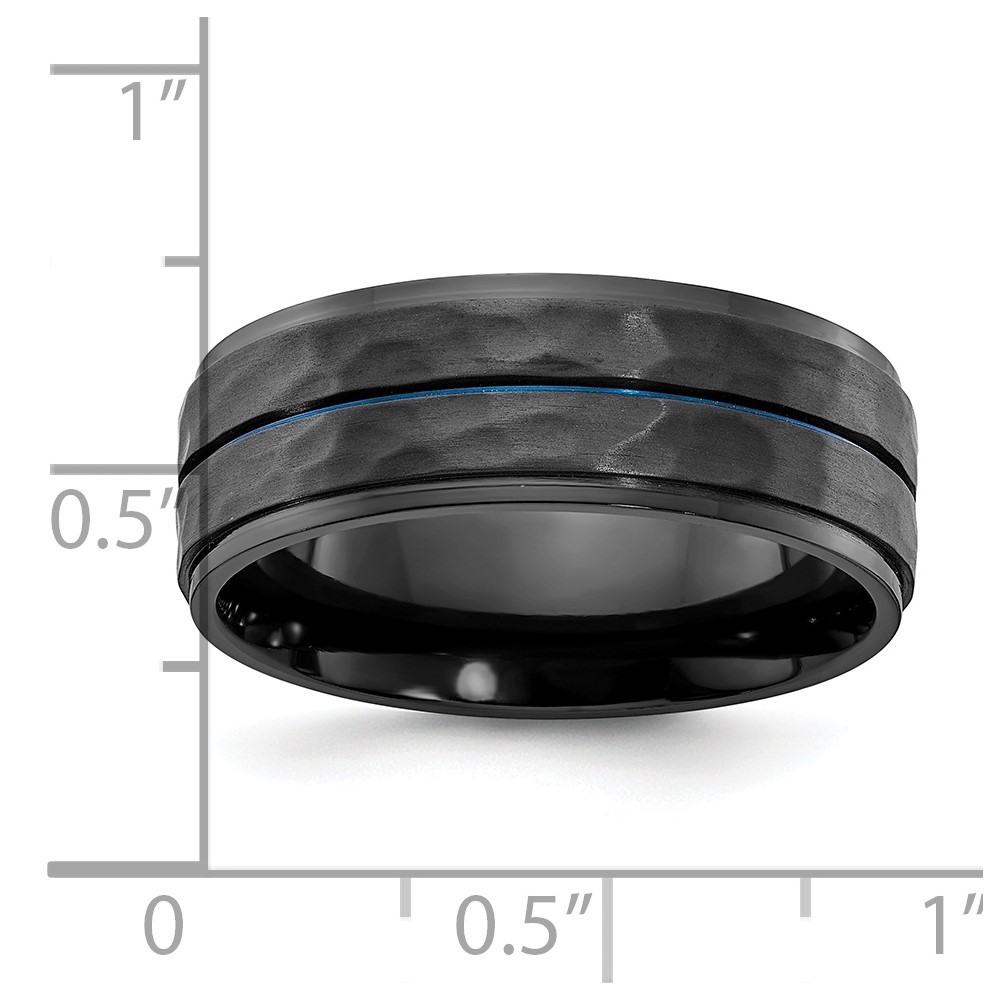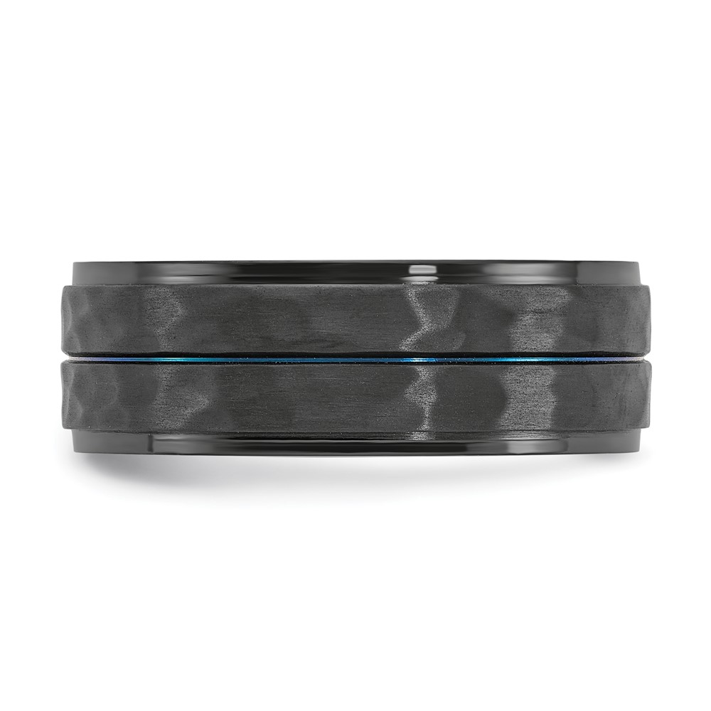 Chisel Black Zirconium Brushed Polished and Hammered with Blue IP-plated 8mm Band