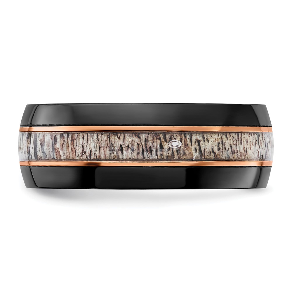 Chisel Black Zirconium Polished Rose IP-plated with Antler Inlay 8mm Band
