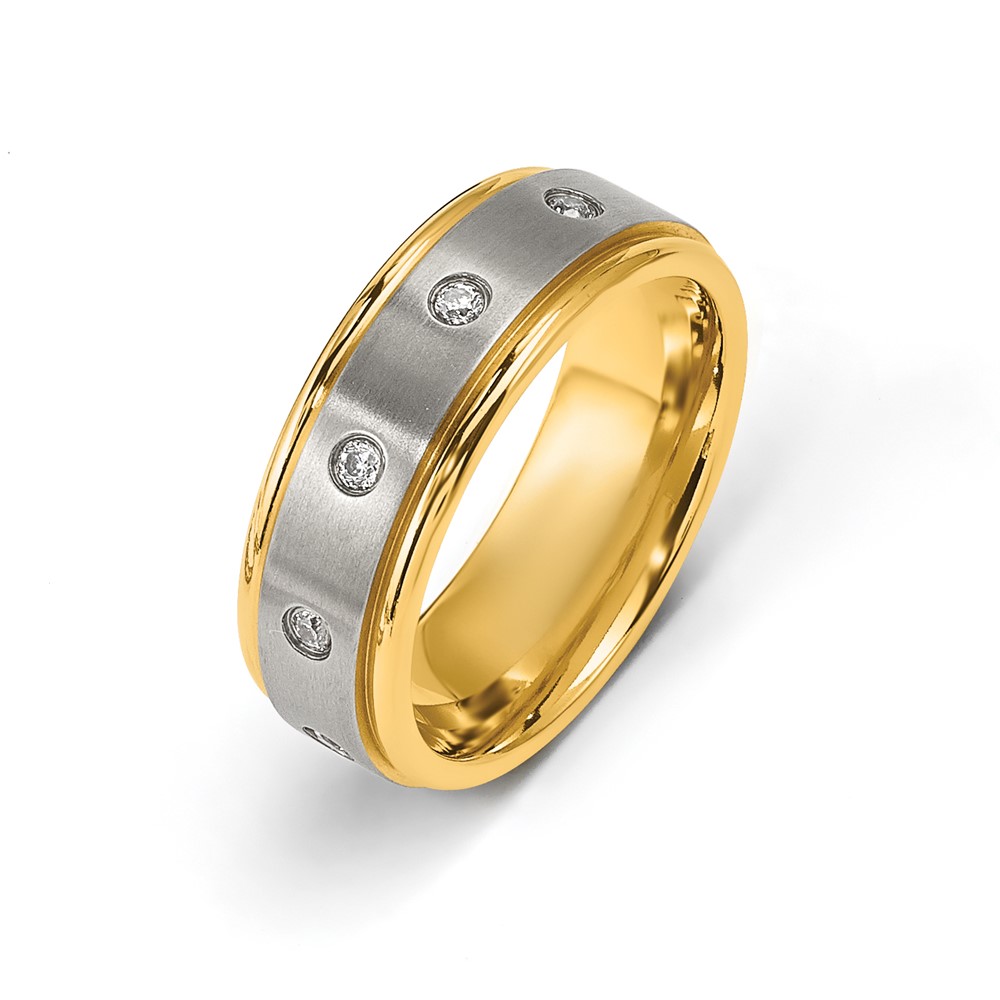 Chisel Titanium Polished with Brushed Center Yellow IP-plated CZ 8.00mm Band