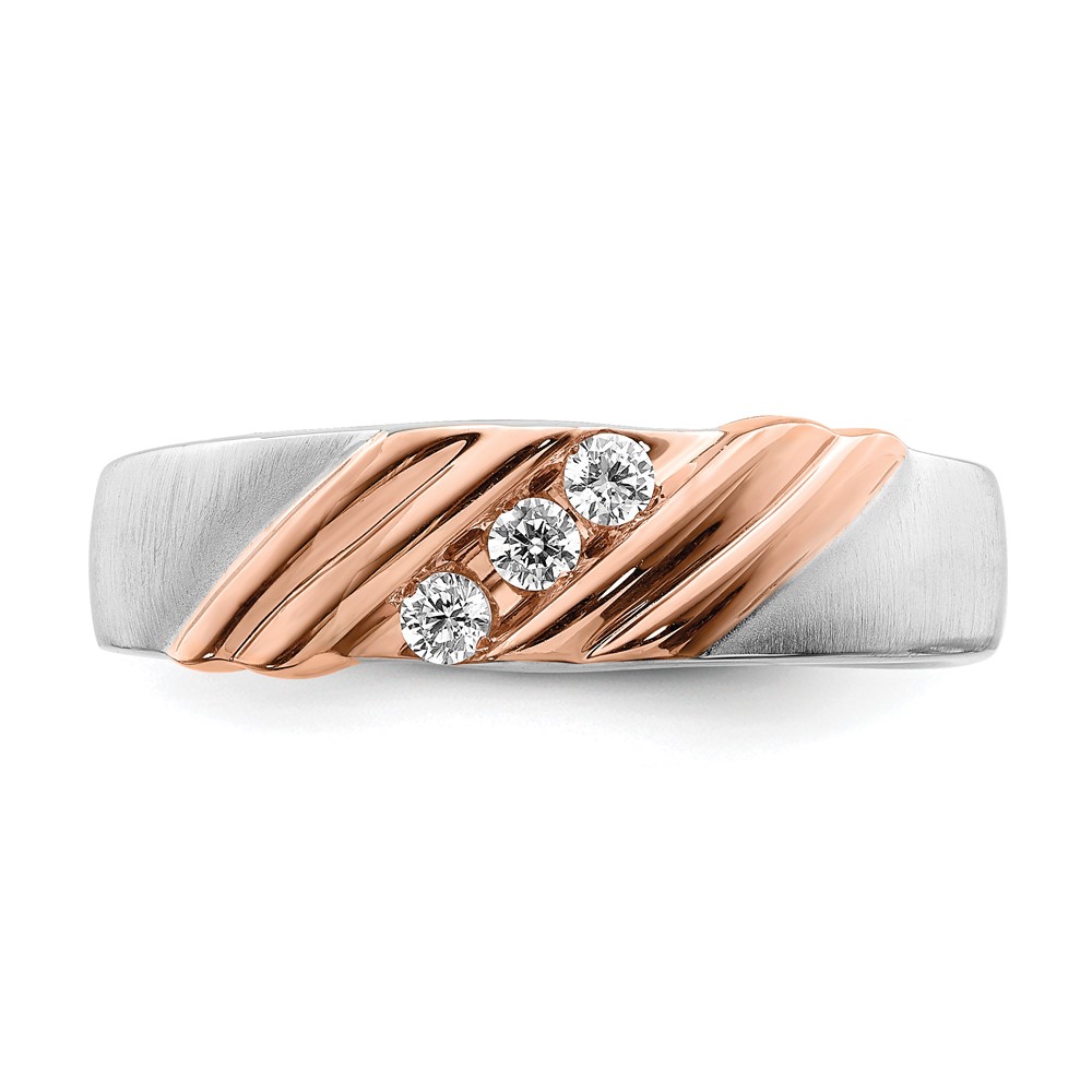 IBGoodman 14k Two-tone Rose and White Gold 1/6 carat Lab Grown Diamond VS/SI+ G+ Three Stone Complete Men's Ring
