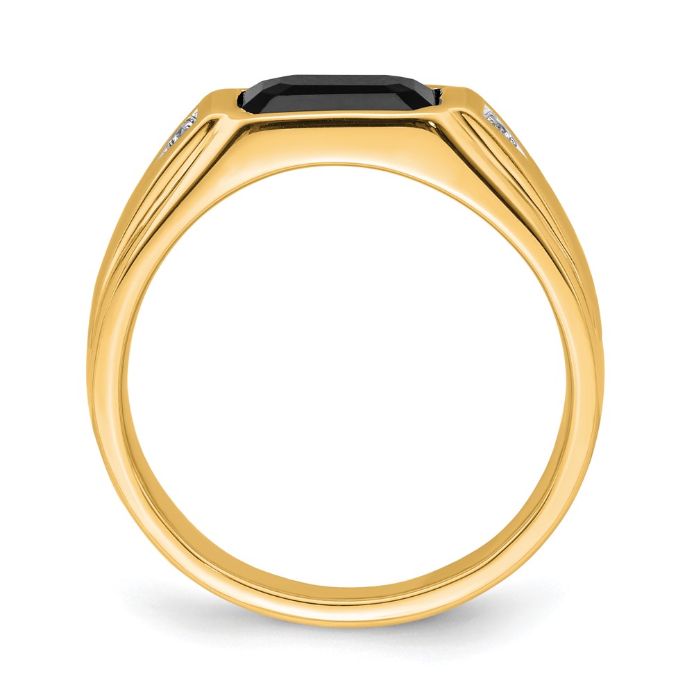 14k Yellow Gold Polished & Satin Onyx & Diamond Mens Ring
