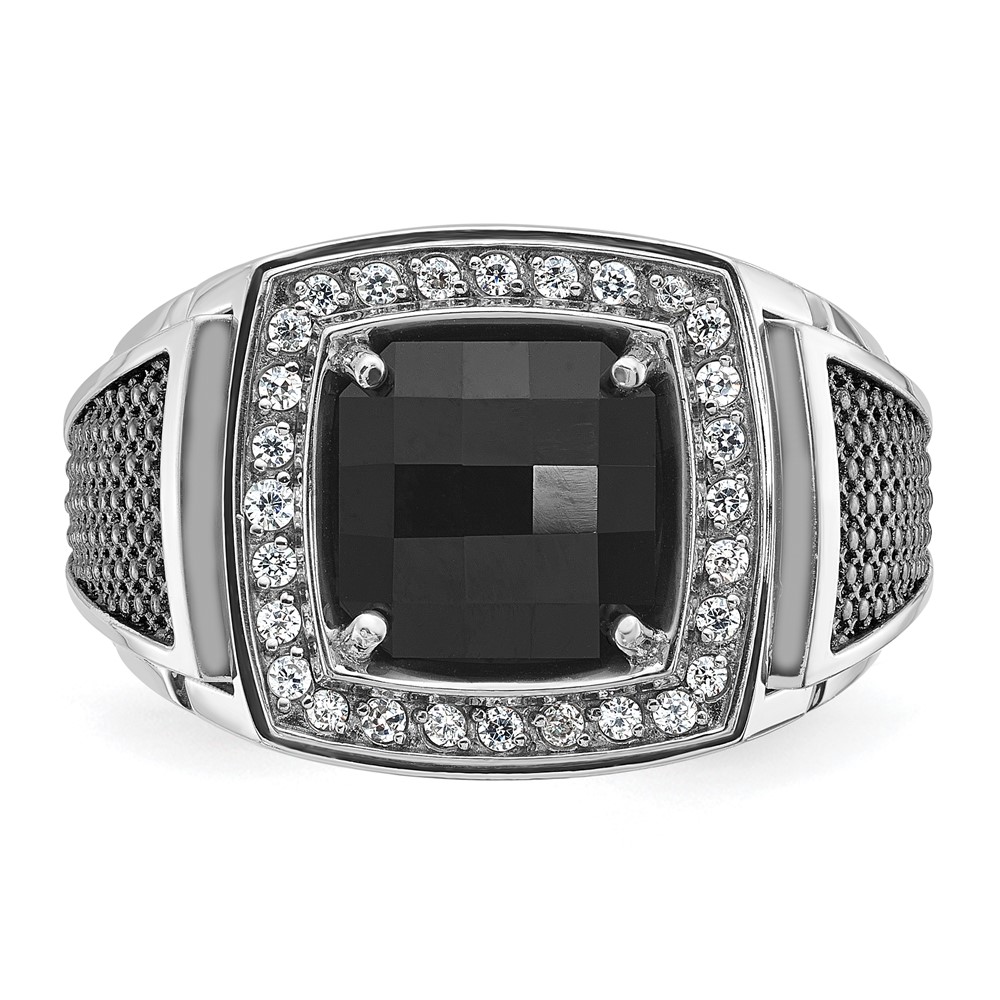 10k White Gold IBGoodman Men's Black Rhodium Onyx and Diamond Complete Ring