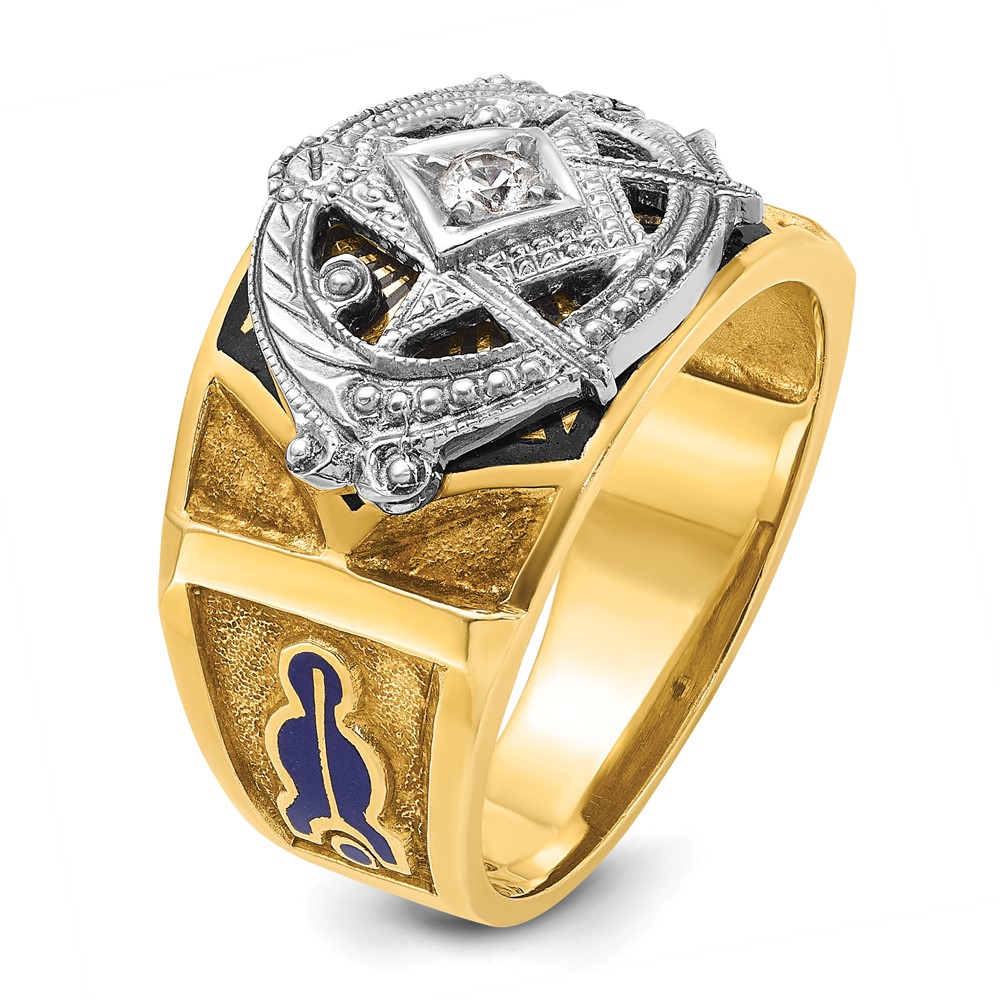 IBGoodman 14k Two-tone Men's Polished and Textured with Blue and Black Enamel Diamond Blue Lodge Master Masonic Ring