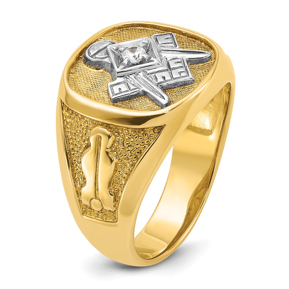 IBGoodman 14k with White Rhodium Men's Polished and Textured Diamond Blue Lodge Master Masonic Ring