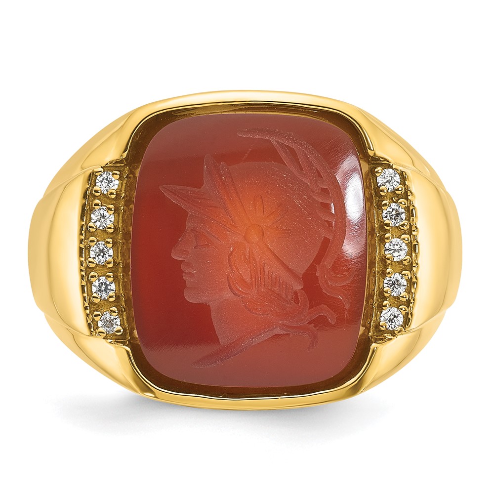 IB Goodman 14k Mens Cushion Carnelian and 1/10 carat Diamond Complete Ring