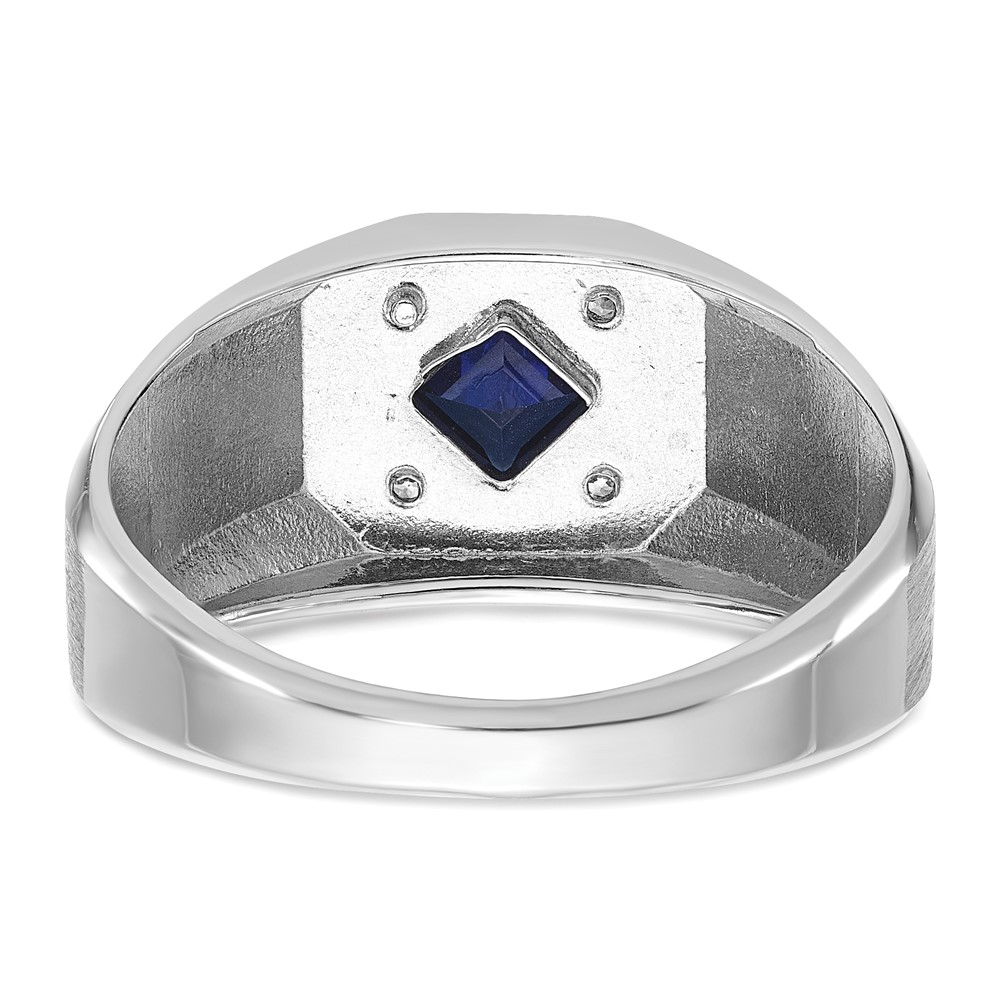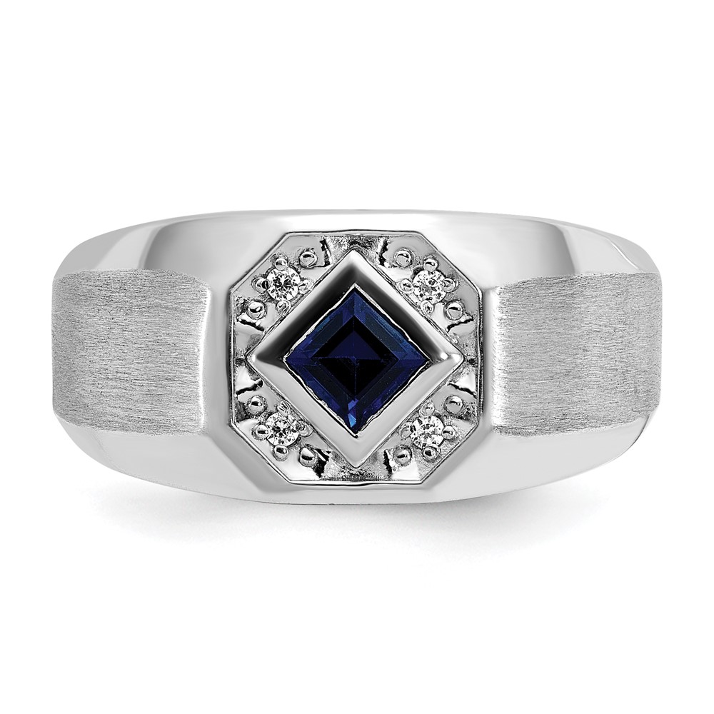 IB Goodman 14k White Gold Mens Square Lab Created Sapphire and 1/20 carat Diamond Satin Complete Ring