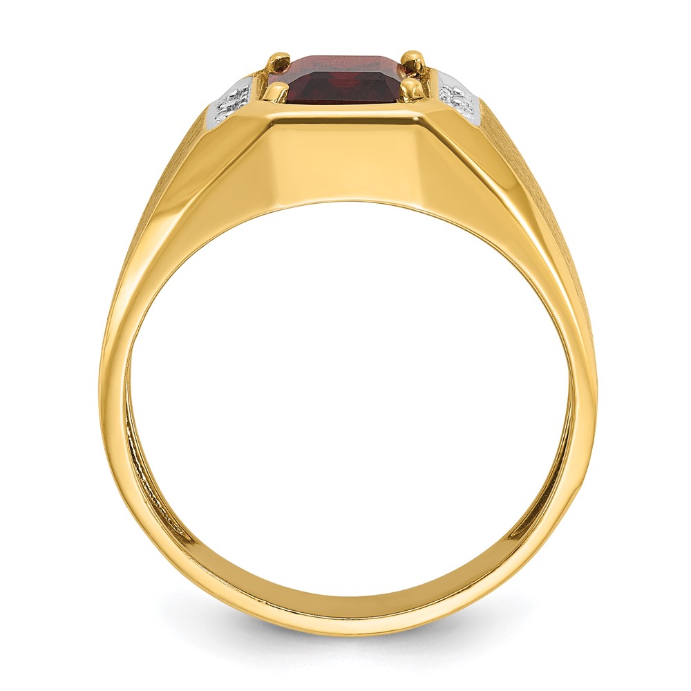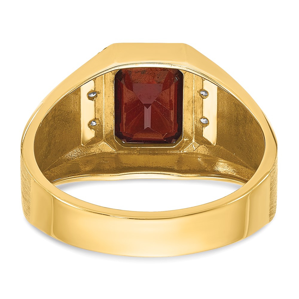 IB Goodman 14k Mens Polished and Satin Octagon Lab Created Ruby and 1/20 carat Diamond Complete Ring