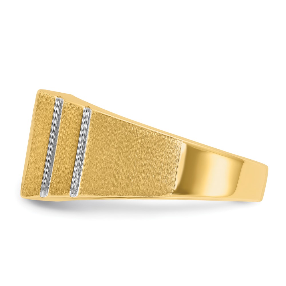 IBGoodman 14k with White Rhodium Men's Polished Satin and Grooved 3-Row 1/3 Carat AA Quality Diamond Ring