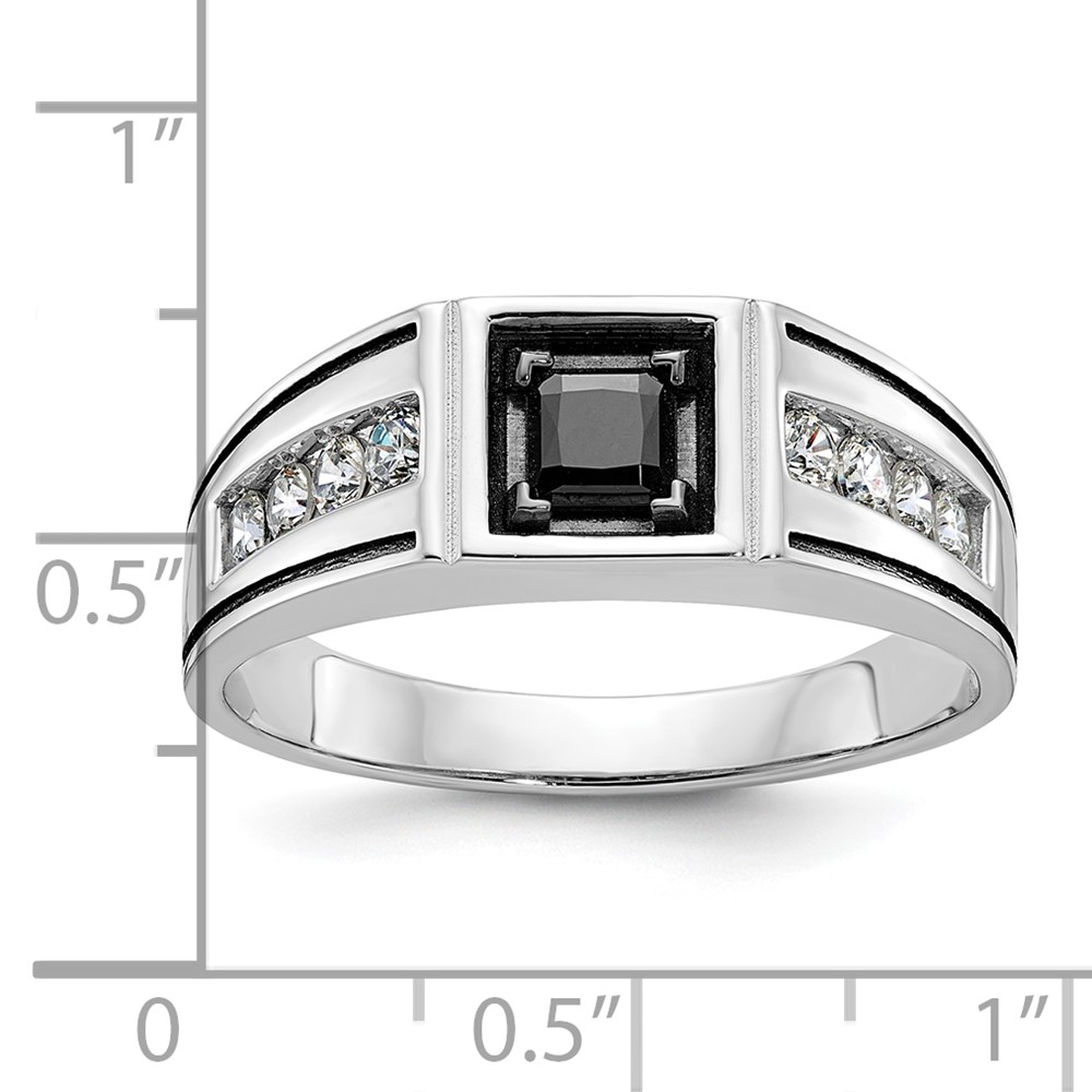 IB Goodman 14k White Gold with Black Rhodium Satin 7/8 carat Black and White Diamond Complete Mens Ring