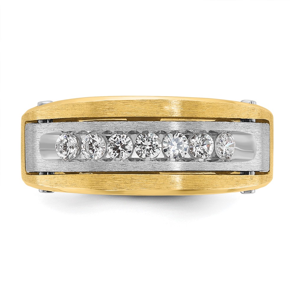 IB Goodman 14k Two-tone Mens Polished Satin and Grooved 7-Stone 1/2 Carat AA Diamond Ring